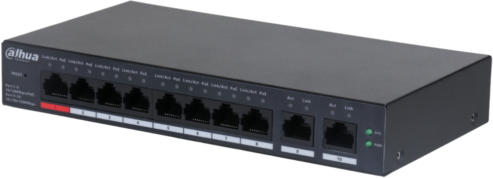 Доставка в 75000 населённых пунктов, ТК СДЭК, Яндекс и Почта РФ Все формы оплаты для физических и юридических лиц! Онлайн конфигураторы ПК и сервера, бесплатная сборка. Гарантия 2 года! Широкий ассортимент комплектующих. Более 30 лет на рынке! ID товара: 699153 Коммутатор (свитч) Dahua DH-CS4010-8ET-110 ОсновныеПроизводитель ........................................................................................................................................................................................................ Код производителя ........................................................................................................................................................................................................ DH-CS4010-8ET-110 Уровень коммутатора ........................................................................................................................................................................................................ Внутренняя пропускная способность ........................................................................................................................................................................................................ Максимальная скорость Ethernet ........................................................................................................................................................................................................ Размер таблицы MAC адресов ........................................................................................................................................................................................................ Размер Jumbo frame ........................................................................................................................................................................................................ 9 Кб Поддержка работы в стеке ........................................................................................................................................................................................................ да ИнтерфейсыОбщее количество портов передачи данных ........................................................................................................................................................................................................ Тип портов ........................................................................................................................................................................................................ RJ-45 Количество портов RJ-45 (100 Мбит/с) ........................................................................................................................................................................................................ Количество uplink портов ........................................................................................................................................................................................................ 2 x RJ-45 (1 Гбит/с) Стандарты и функцииСетевые стандарты ........................................................................................................................................................................................................ IEEE802.3, IEEE802.3u, IEEE802.3x, IEEE802.3ab Поддержка VLAN (IEEE 802.1q) ........................................................................................................................................................................................................ да Максимальное количество виртуальных интерфейсов (VLAN) ........................................................................................................................................................................................................ 32 Поддержка PoE ........................................................................................................................................................................................................ да Количество портов с поддержкой PoE (исходящий) ........................................................................................................................................................................................................ Выходная мощность PoE (общий бюджет) ........................................................................................................................................................................................................ 110 Вт Максимальная выходная мощность PoE (на порт) ........................................................................................................................................................................................................ 7 x 30 Вт, 90 Вт ПротоколыПоддержка DHCP ........................................................................................................................................................................................................ да УправлениеWeb-интерфейс ........................................................................................................................................................................................................ 