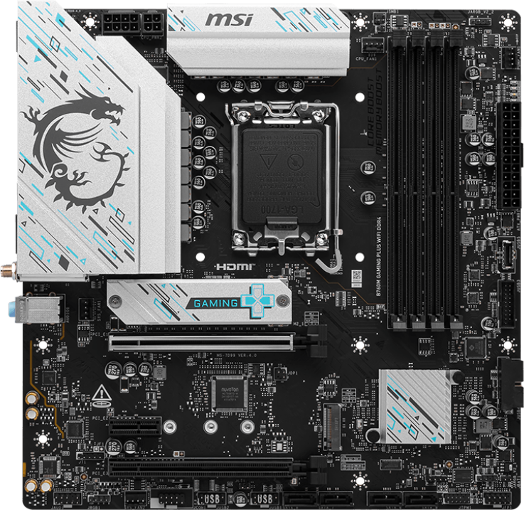 Доставка в 75000 населённых пунктов, ТК СДЭК, Яндекс и Почта РФ Все формы оплаты для физических и юридических лиц! Онлайн конфигураторы ПК и сервера, бесплатная сборка. Гарантия 2 года! Широкий ассортимент комплектующих. Более 30 лет на рынке! ID товара: 711837 Материнская плата MSI B760M GAMING PLUS WIFI DDR4 ОсновныеПроизводитель ........................................................................................................................................................................................................ Код производителя ........................................................................................................................................................................................................ B760M GAMING PLUS WIFI DDR4 Сокет ........................................................................................................................................................................................................ Чипсет ........................................................................................................................................................................................................ ПамятьТип памяти ........................................................................................................................................................................................................ Количество слотов памяти ........................................................................................................................................................................................................ Поддержка ........................................................................................................................................................................................................ Intel XMP Дисковые контроллерыКонтроллер SATA ........................................................................................................................................................................................................ 4 x SATA-III (6 Гб/с) Поддержка RAID ........................................................................................................................................................................................................ 0, 1, 5, 10 Слоты расширенияСлоты расширения ........................................................................................................................................................................................................ 2 x PCI-E 4.0 x16, PCI-E x1, 2 x PCI-E M.2 Тип слотов M.2 ........................................................................................................................................................................................................ - Key M, 2280/2260/2242 (PCIe 4.0 x4); - Key M, 2280/2260/2242 (PCIe 4.0 x4 & SATA). Поддерживаемые режимы PCI-Express ........................................................................................................................................................................................................ x16/x4 Аудио/ВидеоИнтегрированное видео ........................................................................................................................................................................................................ Звук ........................................................................................................................................................................................................ Аудио-контроллер ........................................................................................................................................................................................................ СетьСетевой интерфейс ........................................................................................................................................................................................................ 2.5 Gigabit Ethernet (2.5 Гбит/с), Wi-Fi, Bluetooth Сетевой контроллер ........................................................................................................................................................................................................ Realtek RTL8125BG Версия Wi-Fi ........................................................................................................................................................................................................ 6E Версия Bluetooth ........................................................................................................................................................................................................ 5.3 ИнтерфейсыРазъёмы на задней панели ........................................................................................................................................................................................................ PS/2, 2 x USB 2.0, 2 x USB 3.2 Gen1, 2 x USB 3.2 Gen2, 2 x HDMI, 2 x DisplayPort, RJ-45 ДополнительноКоличество фаз питания ........................................................................................................................................................................................................ Радиатор на подсистеме питания (мосфетах) .........