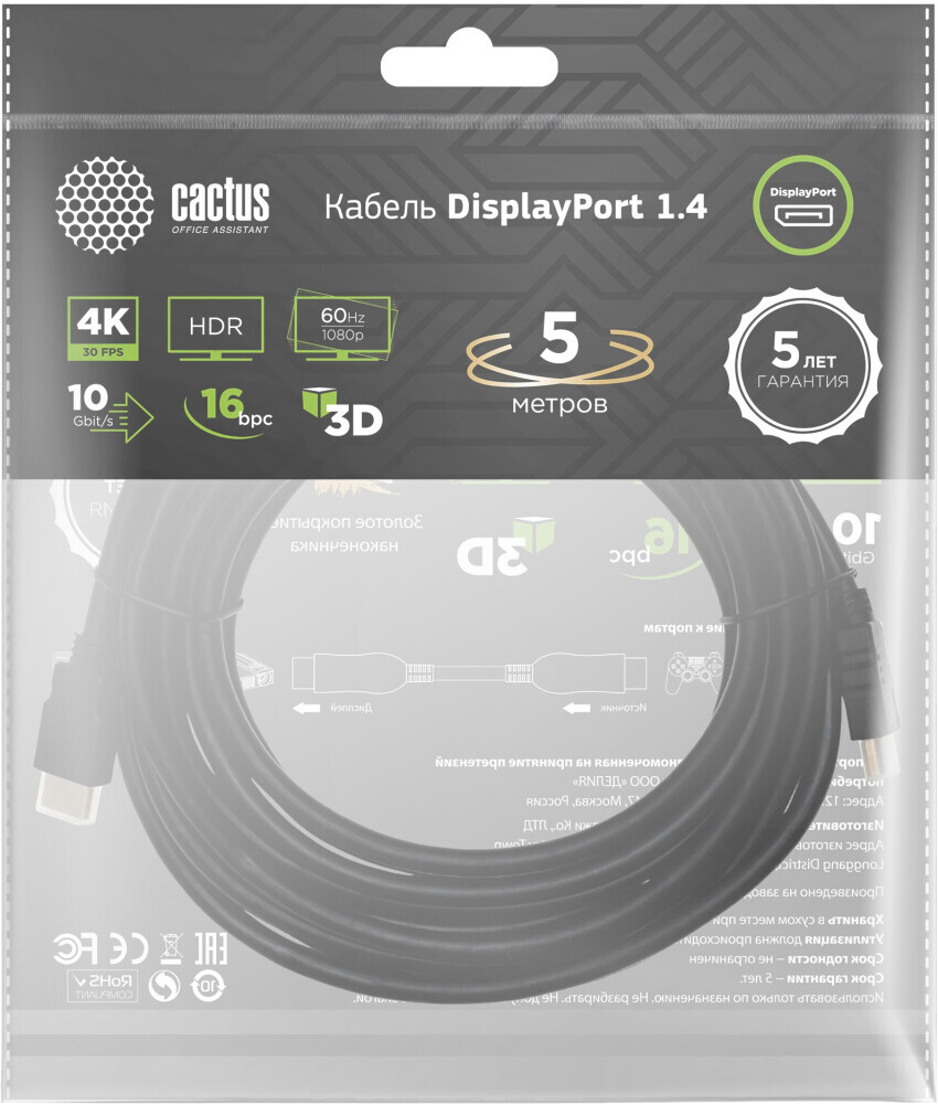 Доставка в 35000 населённых пунктов, ТК СДЭК и Boxberry Все формы оплаты для физических и юридических лиц! Онлайн конфигуратор ПК, бесплатная сборка. Гарантия 2 года! Широкий ассортимент комплектующих. Более 30 лет на рынке! 1 510 ₽ ID товара: 721491 Кабель DisplayPort - DisplayPort, 5м, Cactus CS-DP-DP-1.4-5 ОсновныеПроизводитель ........................................................................................................................................................................................................ Код производителя ........................................................................................................................................................................................................ CS-DP-DP-1.4-5 Тип ........................................................................................................................................................................................................ Длина ........................................................................................................................................................................................................ 5 м Интерфейсы ........................................................................................................................................................................................................ Разъём 1 ........................................................................................................................................................................................................ DisplayPort (M) Разъём 2 ........................................................................................................................................................................................................ DisplayPort (M) Версия DisplayPort ........................................................................................................................................................................................................ 1.4 ДополнительноЦвет ........................................................................................................................................................................................................ чёрный Сайт производителя ........................................................................................................................................................................................................ |