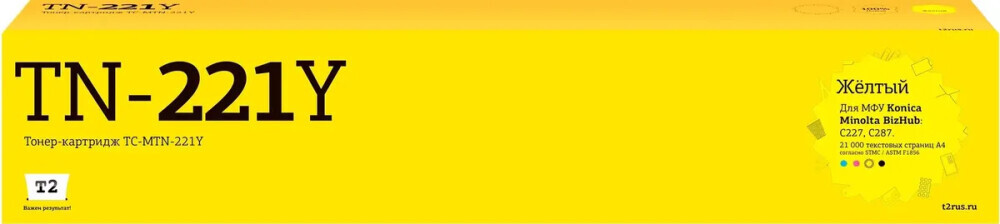 Доставка в 75000 населённых пунктов, ТК СДЭК, Яндекс и Почта РФ Все формы оплаты для физических и юридических лиц! Онлайн конфигуратор ПК, бесплатная сборка. Гарантия 2 года! Широкий ассортимент комплектующих. Более 30 лет на рынке! 2 040 ₽ ID товара: 727186 Картридж T2 TC-MTN-221Y Yellow ОсновныеПроизводитель ........................................................................................................................................................................................................ Код производителя ........................................................................................................................................................................................................ TC-MTN-221Y Тип ........................................................................................................................................................................................................ Тип печати ........................................................................................................................................................................................................ Тип совместимости ........................................................................................................................................................................................................ Совместимый производитель ........................................................................................................................................................................................................ Konica Minolta Цвет ........................................................................................................................................................................................................ жёлтый (yellow) Совместимость ........................................................................................................................................................................................................ Konica Minolta bizhub C227, Konica Minolta bizhub C287 ДополнительноРесурс ........................................................................................................................................................................................................ 21000 стр. Количество в упаковке ........................................................................................................................................................................................................ 1 шт. Сайт производителя ........................................................................................................................................................................................................ |
