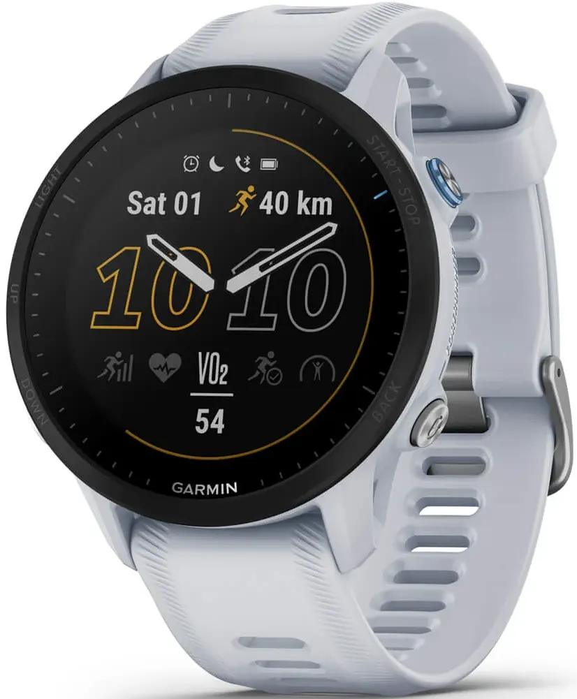 Доставка в 75000 населённых пунктов, ТК СДЭК, Яндекс и Почта РФ Все формы оплаты для физических и юридических лиц! Онлайн конфигуратор ПК, бесплатная сборка. Гарантия 2 года! Широкий ассортимент комплектующих. Более 30 лет на рынке! 45 420 ₽ ID товара: 735961 Умные часы Garmin Forerunner 955 White ОсновныеПроизводитель ........................................................................................................................................................................................................ Код производителя ........................................................................................................................................................................................................ 010-02638-31 Тип ........................................................................................................................................................................................................ Совместимость с ОС ........................................................................................................................................................................................................ Android, iOS Материал корпуса ........................................................................................................................................................................................................ Материал браслета/ремешка ........................................................................................................................................................................................................ ЭкранДиагональ ........................................................................................................................................................................................................ 1.3" Разрешение ........................................................................................................................................................................................................ 260x260 Сенсорный экран ........................................................................................................................................................................................................ да Тип экрана ........................................................................................................................................................................................................ MIP СвязьБеспроводная связь ........................................................................................................................................................................................................ Wi-Fi, Bluetooth Навигация ........................................................................................................................................................................................................ Beidou, GPS, Galileo, QZSS, ГЛОНАСС Память и процессорОбъём памяти ........................................................................................................................................................................................................ 32 Гб ПитаниеВремя работы ........................................................................................................................................................................................................ 8.5 ч Время работы в режиме ожидания ........................................................................................................................................................................................................ 360 ч ФункцииМониторинг ........................................................................................................................................................................................................ калорий, пройденных шагов, сна, стресса, уровня кислорода в крови, физической активности, циклов Датчики ........................................................................................................................................................................................................ акселерометр, высотомер, гироскоп, компас, пульсометр, термометр ДополнительноВлагозащита ........................................................................................................................................................................................................ да, 5 ATM Размер корпуса ........................................................................................................................................................................................................ 47 мм Размер корпуса ........................................................................................................................................................................................................ 46.5 x 46.5 x 14.4 мм Длина ремешка ........................................................................................................................................................................................................ 130-220 мм Цвет корпуса .........................................................................