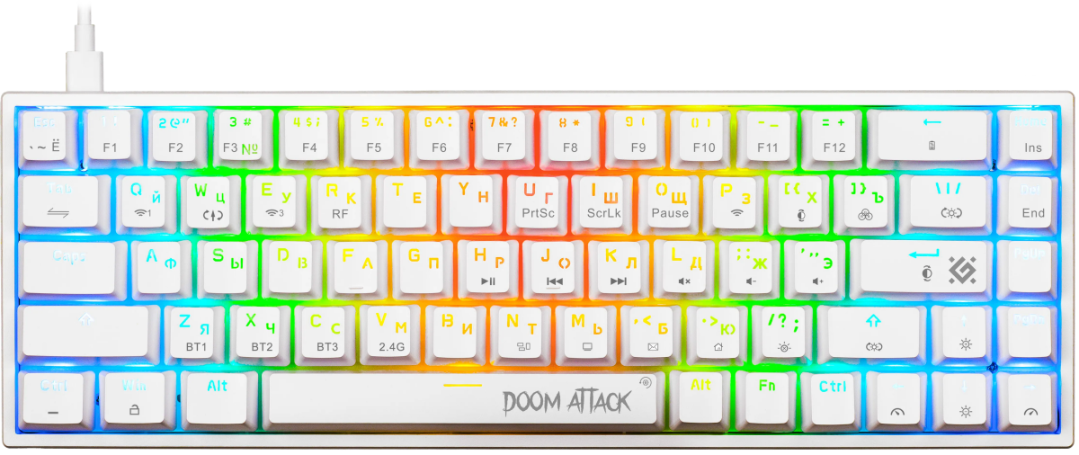 Доставка в 75000 населённых пунктов, ТК СДЭК, Яндекс и Почта РФ Все формы оплаты для физических и юридических лиц! Онлайн конфигуратор ПК, бесплатная сборка. Гарантия 2 года! Широкий ассортимент комплектующих. Более 30 лет на рынке! 3 570 ₽ ID товара: 738638 Клавиатура Defender Doom Attack GK-215 White (45215) ОсновныеПроизводитель ........................................................................................................................................................................................................ Код производителя ........................................................................................................................................................................................................ 45215 Тип устройства ........................................................................................................................................................................................................ клавиатура Тип соединения ........................................................................................................................................................................................................ Интерфейс подключения ........................................................................................................................................................................................................ Bluetooth (без адаптера), USB Тип беспроводной связи ........................................................................................................................................................................................................ Bluetooth/радиоканал Тип клавиатуры ........................................................................................................................................................................................................ Конструкция ........................................................................................................................................................................................................ игровая Тип переключателей ........................................................................................................................................................................................................ Outemu Grey Формат клавиатуры ........................................................................................................................................................................................................ ANSI Количество клавиш ........................................................................................................................................................................................................ 68 Тип пластика кейкапов ........................................................................................................................................................................................................ ABS Подсветка клавиш клавиатуры ........................................................................................................................................................................................................ да Цвет подсветки ........................................................................................................................................................................................................ RGB Тип питания ........................................................................................................................................................................................................ аккумулятор, 1200 мАч ДополнительноЦвет ........................................................................................................................................................................................................ белый Дополнительная информация ........................................................................................................................................................................................................ ресурс нажатий: 50 млн;