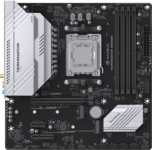Доставка в 75000 населённых пунктов, ТК СДЭК, Яндекс и Почта РФ Все формы оплаты для физических и юридических лиц! Онлайн конфигуратор ПК, бесплатная сборка. Гарантия 2 года! Широкий ассортимент комплектующих. Более 30 лет на рынке! 13 590 ₽ ID товара: 741333 Материнская плата Maxsun Terminator B850M WIFI ОсновныеПроизводитель ........................................................................................................................................................................................................ Код производителя ........................................................................................................................................................................................................ MS-Terminator B850M WIFI Socket ........................................................................................................................................................................................................ Чипсет ........................................................................................................................................................................................................ ПамятьТип памяти ........................................................................................................................................................................................................ Количество слотов памяти ........................................................................................................................................................................................................ Дисковые контроллерыКонтроллер SATA ........................................................................................................................................................................................................ 4 x SATA-III (6 Гб/с) Слоты расширенияСлоты расширения ........................................................................................................................................................................................................ PCI-E 5.0 x16, PCI-E x4, PCI-E x1, 2 x PCI-E M.2 Тип слотов M.2 ........................................................................................................................................................................................................ - Key M, 2280 (PCIE 4.0 x4/x2); - Key M, 2280/22110 (PCIE 4.0 x4/x2). Аудио/ВидеоИнтегрированное видео ........................................................................................................................................................................................................ Аудио-контроллер ........................................................................................................................................................................................................ СетьСетевой интерфейс ........................................................................................................................................................................................................ 2.5 Gigabit Ethernet (2.5 Гбит/с), Wi-Fi, Bluetooth Сетевой контроллер ........................................................................................................................................................................................................ Realtek RTL8125BG Версия Wi-Fi ........................................................................................................................................................................................................ 6 Версия Bluetooth ........................................................................................................................................................................................................ 5.2 ИнтерфейсыРазъёмы на задней панели ........................................................................................................................................................................................................ 4 x USB 2.0, 4 x USB 3.2 Gen1, USB 3.2 Gen2 Type-C, HDMI, DisplayPort, RJ-45, S/PDIF (оптический) ДополнительноКоличество фаз питания ........................................................................................................................................................................................................ Радиатор на подсистеме питания (мосфетах) ........................................................................................................................................................................................................ да Разъёмы для подключения вентиляторов корпуса ........................................................................................................................................................................................................ 2 x 4-pin Разъём питания ATX 12 В ........................................................................................................................................................................................................ 8-pin Внутренние разъёмы USB на плате ..........................................................................................................................................................