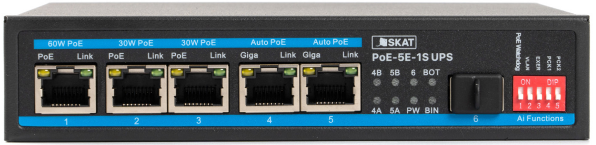 Доставка в 75000 населённых пунктов, ТК СДЭК, Яндекс и Почта РФ Все формы оплаты для физических и юридических лиц! Онлайн конфигуратор ПК, бесплатная сборка. Гарантия 2 года! Широкий ассортимент комплектующих. Более 30 лет на рынке! 14 050 ₽ ID товара: 744865 Коммутатор (свитч) Бастион SKAT PoE-UPS-5E-1S ОсновныеПроизводитель ........................................................................................................................................................................................................ Код производителя ........................................................................................................................................................................................................ SKAT PoE-UPS-5E-1S Возможность установки в стойку ........................................................................................................................................................................................................ да Высота ........................................................................................................................................................................................................ 1U Внутренняя пропускная способность ........................................................................................................................................................................................................ Максимальная скорость Ethernet ........................................................................................................................................................................................................ Размер таблицы MAC адресов ........................................................................................................................................................................................................ Поддержка работы в стеке ........................................................................................................................................................................................................ да ИнтерфейсыОбщее количество портов передачи данных ........................................................................................................................................................................................................ Тип портов ........................................................................................................................................................................................................ RJ-45, SFP Количество портов RJ-45 (1 Гбит/с) ........................................................................................................................................................................................................ Количество uplink портов ........................................................................................................................................................................................................ SFP (1 Гбит/с) Стандарты и функцииСетевые стандарты ........................................................................................................................................................................................................ IEEE802.3, IEEE802.3i, IEEE802.3u, IEEE 802.3ab, IEEE802.3x, IEEE802.3 af/at Режимы работы ........................................................................................................................................................................................................ изоляция портов (VLAN), увеличение расстояния передачи, контроль статуса PoE Поддержка PoE ........................................................................................................................................................................................................ да Количество портов с поддержкой PoE (исходящий) ........................................................................................................................................................................................................ Выходная мощность PoE (общий бюджет) ........................................................................................................................................................................................................ 65 Вт Максимальная выходная мощность PoE (на порт) ........................................................................................................................................................................................................ 4 x 30 Вт, 60 Вт ДополнительноДополнительная информация ........................................................................................................................................................................................................ PCK1 ВКЛЮЧЕН: четвертый порт переходит в режим 24 В принудительно PCK1 ВЫКЛЮЧЕН: четвертый порт переходит в режим автоматического выбора питания 24 В / 48 В PCK2 ВКЛЮЧЕН: пятый порт переходит в режим 24 В принуд