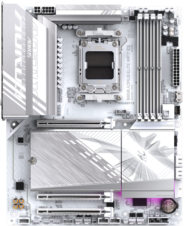 Доставка в 75000 населённых пунктов, ТК СДЭК, Яндекс и Почта РФ Все формы оплаты для физических и юридических лиц! Онлайн конфигураторы ПК и сервера, бесплатная сборка. Гарантия 2 года! Широкий ассортимент комплектующих. Более 30 лет на рынке! 23 840 ₽ ID товара: 746345 Материнская плата Gigabyte B850 AORUS ELITE WIFI7 ICE (rev. 1.1) ОсновныеПроизводитель ........................................................................................................................................................................................................ Код производителя ........................................................................................................................................................................................................ B850 AORUS ELITE WIFI7 ICE Сокет ........................................................................................................................................................................................................ Чипсет ........................................................................................................................................................................................................ ПамятьТип памяти ........................................................................................................................................................................................................ Количество слотов памяти ........................................................................................................................................................................................................ Поддержка ........................................................................................................................................................................................................ AMD EXPO, Intel XMP Дисковые контроллерыКонтроллер SATA ........................................................................................................................................................................................................ 4 x SATA-III (6 Гб/с) Поддержка RAID ........................................................................................................................................................................................................ 0, 1, 10 Слоты расширенияСлоты расширения ........................................................................................................................................................................................................ PCI-E 5.0 x16, 2 x PCI-E 3.0 x16, 3 x PCI-E M.2 Тип слотов M.2 ........................................................................................................................................................................................................ - Socket 3, M key, 25110/22110/2580/2280 (PCIe 5.0 x4/x2); - Socket 3, M key, 25110/22110/2580/2280 (PCIe 4.0 x4/x2); - Socket 3, M key, 25110/22110/2580/2280 (PCIe 4.0 x4/x2). Поддерживаемые режимы PCI-Express ........................................................................................................................................................................................................ x16/x1/x1 Аудио/ВидеоИнтегрированное видео ........................................................................................................................................................................................................ Звук ........................................................................................................................................................................................................ Аудио-контроллер ........................................................................................................................................................................................................ СетьСетевой интерфейс ........................................................................................................................................................................................................ 2.5 Gigabit Ethernet (2.5 Гбит/с), Wi-Fi, Bluetooth Сетевой контроллер ........................................................................................................................................................................................................ Realtek Версия Wi-Fi ........................................................................................................................................................................................................ 7, для правильной работы функций Wi-Fi 7 требуется Windows 11 SV3 Версия Bluetooth ........................................................................................................................................................................................................ 5.4 ИнтерфейсыРазъёмы на задней панели ........................................................................................................................................................................................................ 4 x USB 2.0, 5 x USB 3.2 Gen1, 2 x USB 3.2 Gen2, USB 3.2 Gen2 Type-C, DisplayPort, RJ-45, S/PDIF (оптический) ДополнительноКоличество фаз питания ...................................