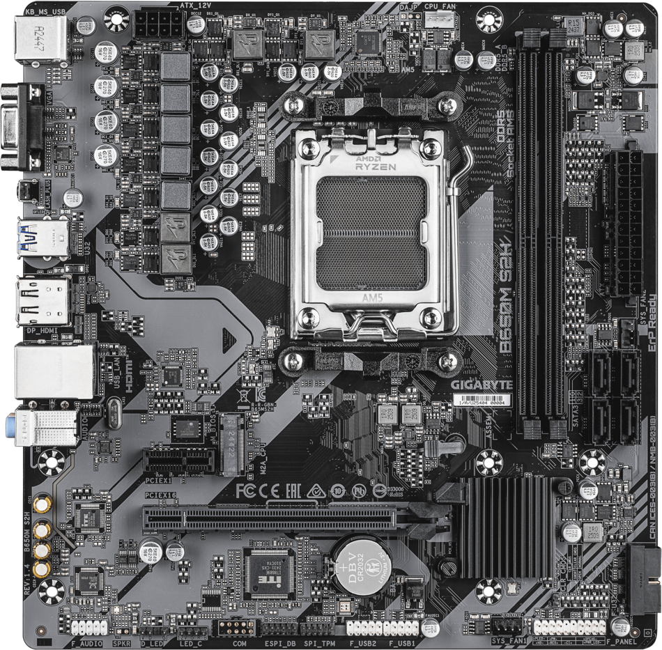 Доставка в 75000 населённых пунктов, ТК СДЭК, Яндекс и Почта РФ Все формы оплаты для физических и юридических лиц! Онлайн конфигураторы ПК и сервера, бесплатная сборка. Гарантия 2 года! Широкий ассортимент комплектующих. Более 30 лет на рынке! 9 740 ₽ ID товара: 749677 Материнская плата Gigabyte B650M S2H (rev. 1.4) ОсновныеПроизводитель ........................................................................................................................................................................................................ Код производителя ........................................................................................................................................................................................................ B650M S2H (rev. 1.4) Сокет ........................................................................................................................................................................................................ Чипсет ........................................................................................................................................................................................................ ПамятьТип памяти ........................................................................................................................................................................................................ Количество слотов памяти ........................................................................................................................................................................................................ Максимальный объём поддерживаемой памяти ........................................................................................................................................................................................................ 128 Гб Поддержка ........................................................................................................................................................................................................ AMD EXPO, Intel XMP Дисковые контроллерыКонтроллер SATA ........................................................................................................................................................................................................ 4 x SATA-III (6 Гб/с) Поддержка RAID ........................................................................................................................................................................................................ 0, 1, 10 Слоты расширенияСлоты расширения ........................................................................................................................................................................................................ PCI-E 4.0 x16, PCI-E x1, PCI-E M.2 Тип слотов M.2 ........................................................................................................................................................................................................ 2280/2580 (PCI-E 4.0 x4) Аудио/ВидеоИнтегрированное видео ........................................................................................................................................................................................................ Звук ........................................................................................................................................................................................................ Аудио-контроллер ........................................................................................................................................................................................................ СетьСетевой интерфейс ........................................................................................................................................................................................................ Gigabit Ethernet (1 Гбит/с) Сетевой контроллер ........................................................................................................................................................................................................ Realtek ИнтерфейсыРазъёмы на задней панели ........................................................................................................................................................................................................ PS/2, 4 x USB 2.0, 2 x USB 3.2 Gen1, VGA, HDMI, DisplayPort, RJ-45 ДополнительноКоличество фаз питания ........................................................................................................................................................................................................ Разъёмы для подключения вентиляторов корпуса ........................................................................................................................................................................................................ 2 x 4-pin Разъём питания ATX 12 В ........................................................................................................................................................................................................ 8-pin Внутренние разъёмы USB на плате ............................