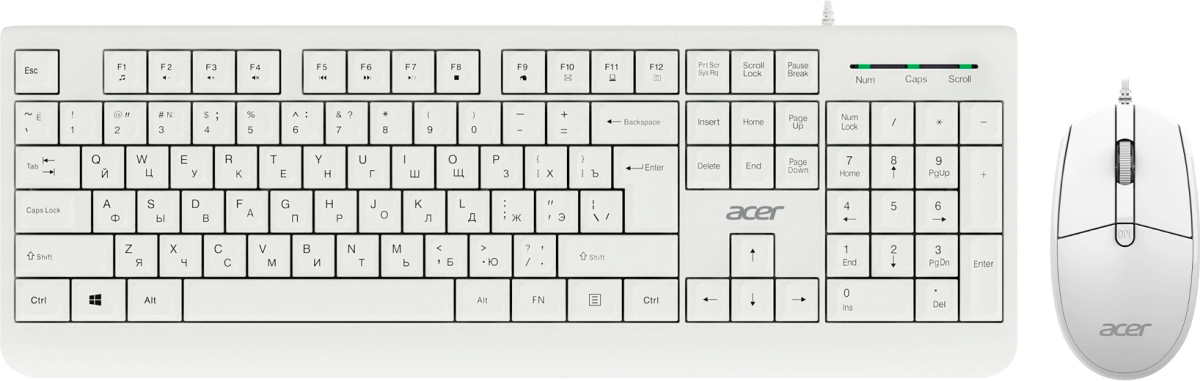 Доставка в 75000 населённых пунктов, ТК СДЭК, Яндекс и Почта РФ Все формы оплаты для физических и юридических лиц! Онлайн конфигуратор ПК, бесплатная сборка. Гарантия 2 года! Широкий ассортимент комплектующих. Более 30 лет на рынке! 1 190 ₽ ID товара: 750626 Клавиатура + мышь Acer OCC400 White ОсновныеПроизводитель ........................................................................................................................................................................................................ Код производителя ........................................................................................................................................................................................................ ZL.ACCCC.014 Тип устройства ........................................................................................................................................................................................................ клавиатура + мышь Тип соединения ........................................................................................................................................................................................................ Интерфейс подключения ........................................................................................................................................................................................................ USB КлавиатураТип клавиатуры ........................................................................................................................................................................................................ мембранная Конструкция ........................................................................................................................................................................................................ классическая Количество клавиш ........................................................................................................................................................................................................ 104 Цифровой блок ........................................................................................................................................................................................................ да МышьТип мыши ........................................................................................................................................................................................................ оптическая Дизайн мыши ........................................................................................................................................................................................................ для правой и левой руки Разрешение сенсора ........................................................................................................................................................................................................ 2000 dpi Количество кнопок ........................................................................................................................................................................................................ 4 ДополнительноЦвет ........................................................................................................................................................................................................ белый Дополнительная информация ........................................................................................................................................................................................................ размеры клавиатуры: 438 x 23.9 x 154.2 мм