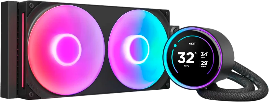 Доставка в 75000 населённых пунктов, ТК СДЭК, Яндекс и Почта РФ Все формы оплаты для физических и юридических лиц! Онлайн конфигуратор ПК, бесплатная сборка. Гарантия 2 года! Широкий ассортимент комплектующих. Более 30 лет на рынке! 28 200 ₽ ID товара: 751752 Система жидкостного охлаждения NZXT Kraken Elite 280 Black (RL-KR28E-B2) ОсновныеПроизводитель ........................................................................................................................................................................................................ Код производителя ........................................................................................................................................................................................................ RL-KR28E-B2 Система охлаждения ........................................................................................................................................................................................................ жидкостная Назначение ........................................................................................................................................................................................................ для процессора Socket ........................................................................................................................................................................................................ LGA 115x/1200, LGA 1700, 1851, AM4, AM5 Максимальная рассеиваемая мощность ........................................................................................................................................................................................................ 250 Вт Количество вентиляторов ........................................................................................................................................................................................................ Размеры вентилятора ........................................................................................................................................................................................................ Скорость вращения вентилятора ........................................................................................................................................................................................................ 500-2000 об/мин Уровень шума вентилятора ........................................................................................................................................................................................................ 34.5 дБ Воздушный поток ........................................................................................................................................................................................................ 98.61 CFM Тип подшипника ........................................................................................................................................................................................................ гидродинамический Регулятор оборотов ........................................................................................................................................................................................................ PWM Общая рамка вентиляторов ........................................................................................................................................................................................................ да РадиаторРазмер радиатора ........................................................................................................................................................................................................ 321 x 27 x 137 мм Материал радиатора ........................................................................................................................................................................................................ Монтажный размер радиатора ........................................................................................................................................................................................................ Помпа и водоблокМатериал водоблока ........................................................................................................................................................................................................ медь Скорость помпы ........................................................................................................................................................................................................ 1200-2800 об/мин, ± 300 Тип подшипника помпы ........................................................................................................................................................................................................ гидродинамический Тип коннектора помпы ........................................................................................................................................................................................................ 3-pin, 9-pin USB, SATA Power ДополнительноДлина трубок ...........