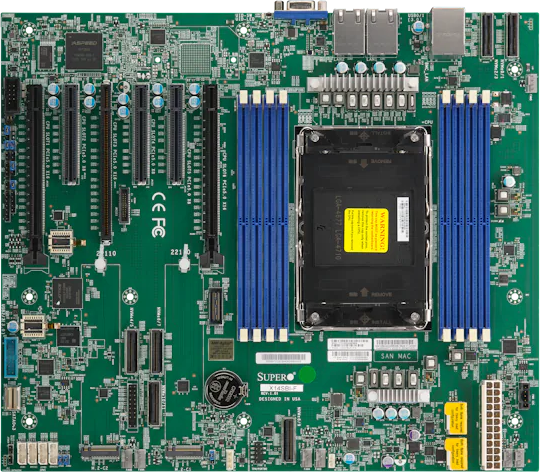 Доставка в 75000 населённых пунктов, ТК СДЭК, Яндекс и Почта РФ Все формы оплаты для физических и юридических лиц! Онлайн конфигураторы ПК и сервера, бесплатная сборка. Гарантия 2 года! Широкий ассортимент комплектующих. Более 30 лет на рынке! 84 560 ₽ ID товара: 752957 Серверная материнская плата SuperMicro X14SBI-F-B ОсновныеПроизводитель ........................................................................................................................................................................................................ Код производителя ........................................................................................................................................................................................................ MBD-X14SBI-F-B Socket ........................................................................................................................................................................................................ Количество сокетов ........................................................................................................................................................................................................ Поддерживаемые процессоры ........................................................................................................................................................................................................ Intel® Xeon® 6700/6500 series processors with P-cores or 6700 series processors with E-cores Максимальное количество ядер ........................................................................................................................................................................................................ 144 Максимальное тепловыделение ........................................................................................................................................................................................................ 350 Вт Чипсет ........................................................................................................................................................................................................ ПамятьСтандарт памяти ........................................................................................................................................................................................................ Тип поддерживаемой памяти ........................................................................................................................................................................................................ RDIMM Количество слотов памяти ........................................................................................................................................................................................................ Поддержка частот ........................................................................................................................................................................................................ 8000 МГц Максимальный объём памяти ........................................................................................................................................................................................................ Дисковые контроллеры и слоты расширенияДисковые контроллеры ........................................................................................................................................................................................................ 6 x MCIO, SlimSAS Слоты расширения ........................................................................................................................................................................................................ 3 x PCI-E 5.0 x16, 3 x PCI-E x8, 2 x M.2 Интерфейс M.2 ........................................................................................................................................................................................................ PCI-E Размер M.2 ........................................................................................................................................................................................................ 22110 Аудио/видеоВстроенный видеоадаптер ........................................................................................................................................................................................................ да, Aspeed AST2600 СетьСетевой интерфейс ........................................................................................................................................................................................................ 2 x Gigabit Ethernet (1 Гбит/с) ПодключениеРазъёмы на задней панели ........................................................................................................................................................................................................ 2 x USB 3.2 Gen 1, VGA, 3 x RJ-45 Основной разъём питания ........................................................................................................................................................................................................ 24-pin Р
