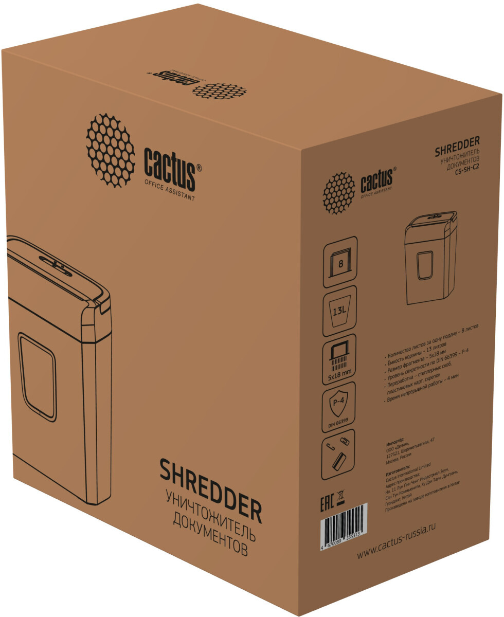 Доставка в 35000 населённых пунктов, ТК СДЭК и Boxberry Все формы оплаты для физических и юридических лиц! Онлайн конфигуратор ПК, бесплатная сборка. Гарантия 2 года! Широкий ассортимент комплектующих. Более 30 лет на рынке! 5 570 ₽ ID товара: 753642 Уничтожитель бумаги (шредер) Cactus CS-SH-C2 ОсновныеПроизводитель ........................................................................................................................................................................................................ Код производителя ........................................................................................................................................................................................................ CS-SH-C2 Уровень секретности ........................................................................................................................................................................................................ Способ резки ........................................................................................................................................................................................................ Размер частиц ........................................................................................................................................................................................................ 5x18 мм Количество уничтожаемых листов ........................................................................................................................................................................................................ 8 Объём корзины ........................................................................................................................................................................................................ 13 л Ширина приёмного отверстия ........................................................................................................................................................................................................ 220 мм Скорость резки ........................................................................................................................................................................................................ 25 мм/сек Уничтожаемые материалы ........................................................................................................................................................................................................ бумага, пластиковые карты, скобы, скрепки ДополнительноРеверс ........................................................................................................................................................................................................ да Автостарт ........................................................................................................................................................................................................ да Уровень шума ........................................................................................................................................................................................................ 70 дБ Размеры (ШхВхГ) ........................................................................................................................................................................................................ 300 x 364 x 180 мм Вес ........................................................................................................................................................................................................ 3.85 кг Гарантия ........................................................................................................................................................................................................ официальная гарантия производителя Сайт производителя ........................................................................................................................................................................................................ |