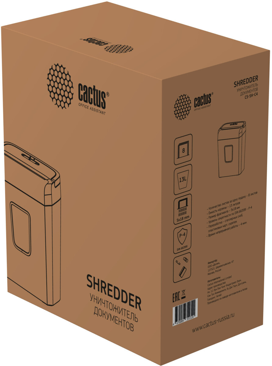 Доставка в 75000 населённых пунктов, ТК СДЭК, Яндекс и Почта РФ Все формы оплаты для физических и юридических лиц! Онлайн конфигуратор ПК, бесплатная сборка. Гарантия 2 года! Широкий ассортимент комплектующих. Более 30 лет на рынке! 5 450 ₽ ID товара: 753643 Уничтожитель бумаги (шредер) Cactus CS-SH-C4 ОсновныеПроизводитель ........................................................................................................................................................................................................ Код производителя ........................................................................................................................................................................................................ CS-SH-C4 Уровень секретности ........................................................................................................................................................................................................ Способ резки ........................................................................................................................................................................................................ Размер частиц ........................................................................................................................................................................................................ 5x18 мм Количество уничтожаемых листов ........................................................................................................................................................................................................ 8 Объём корзины ........................................................................................................................................................................................................ 13 л Ширина приёмного отверстия ........................................................................................................................................................................................................ 220 мм Скорость резки ........................................................................................................................................................................................................ 25 мм/сек Уничтожаемые материалы ........................................................................................................................................................................................................ бумага, пластиковые карты, скобы, скрепки ДополнительноРеверс ........................................................................................................................................................................................................ да Автостарт ........................................................................................................................................................................................................ да Уровень шума ........................................................................................................................................................................................................ 70 дБ Размеры (ШхВхГ) ........................................................................................................................................................................................................ 300 x 364 x 180 мм Вес ........................................................................................................................................................................................................ 3.85 кг Гарантия ........................................................................................................................................................................................................ официальная гарантия производителя Сайт производителя ........................................................................................................................................................................................................ |