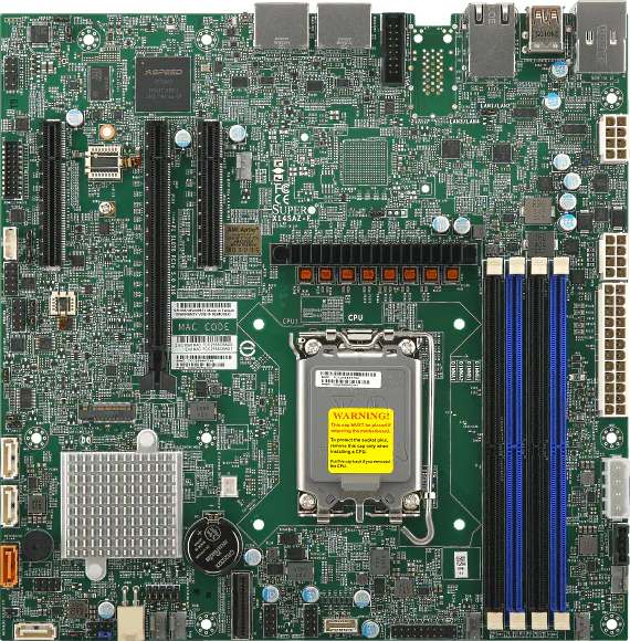 Доставка в 75000 населённых пунктов, ТК СДЭК, Яндекс и Почта РФ Все формы оплаты для физических и юридических лиц! Онлайн конфигуратор ПК, бесплатная сборка. Гарантия 2 года! Широкий ассортимент комплектующих. Более 30 лет на рынке! 116 230 ₽ ID товара: 755339 Серверная материнская плата SuperMicro X14SAZ-F-B ОсновныеПроизводитель ........................................................................................................................................................................................................ Код производителя ........................................................................................................................................................................................................ MBD-X14SAZ-F-B Socket ........................................................................................................................................................................................................ Количество сокетов ........................................................................................................................................................................................................ Поддерживаемые процессоры ........................................................................................................................................................................................................ Intel® Core® Ultra 9/7/5 (Series 2) Processors Максимальное количество ядер ........................................................................................................................................................................................................ 24 Максимальное тепловыделение ........................................................................................................................................................................................................ 125 Вт Чипсет ........................................................................................................................................................................................................ ПамятьСтандарт памяти ........................................................................................................................................................................................................ Тип поддерживаемой памяти ........................................................................................................................................................................................................ UDIMM, ECC Количество слотов памяти ........................................................................................................................................................................................................ Поддержка частот ........................................................................................................................................................................................................ 5600 МГц Максимальный объём памяти ........................................................................................................................................................................................................ Дисковые контроллеры и слоты расширенияДисковые контроллеры ........................................................................................................................................................................................................ 4 x SATA-III (6 Гб/с), MCIO Поддержка RAID ........................................................................................................................................................................................................ 0, 1, 5, 10 Слоты расширения ........................................................................................................................................................................................................ PCI-E 5.0 x16, 2 x PCI-E x4, M.2 Интерфейс M.2 ........................................................................................................................................................................................................ PCI-E Размер M.2 ........................................................................................................................................................................................................ 2280, 22110 СетьСетевой интерфейс ........................................................................................................................................................................................................ 2 x 2.5 Gigabit Ethernet (2.5 Гбит/с) ПодключениеРазъёмы на задней панели ........................................................................................................................................................................................................ 4 x USB 3.2 Gen 2, VGA, 2 x DisplayPort, 2 x HDMI, 3 x RJ-45 Основной разъём питания ........................................................................................................................................................................................................ 24-pin Разъём питания процессора .......................