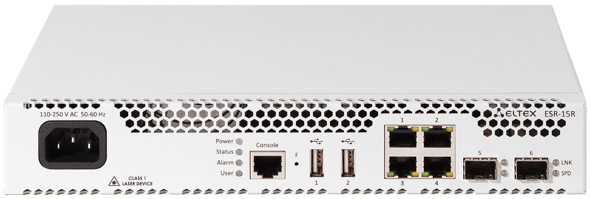 Доставка в 75000 населённых пунктов, ТК СДЭК, Яндекс и Почта РФ Все формы оплаты для физических и юридических лиц! Онлайн конфигураторы ПК и сервера, бесплатная сборка. Гарантия 2 года! Широкий ассортимент комплектующих. Более 30 лет на рынке! 110 430 ₽ ID товара: 755406 Маршрутизатор (роутер) Eltex ESR-15R ОсновныеПроизводитель ........................................................................................................................................................................................................ Код производителя ........................................................................................................................................................................................................ ESR-15R Возможность установки в стойку ........................................................................................................................................................................................................ да Высота ........................................................................................................................................................................................................ 1U Возможность подключения модема ........................................................................................................................................................................................................ 3G/LTE ИнтерфейсыОбщее количество портов передачи данных ........................................................................................................................................................................................................ 6 Количество портов WAN/LAN ........................................................................................................................................................................................................ Тип портов WAN/LAN ........................................................................................................................................................................................................ 4 x RJ-45 (1 Гбит/с), 2 x SFP (1 Гбит/с) Консольный порт (CLI) ........................................................................................................................................................................................................ RJ-45 USB-порты ........................................................................................................................................................................................................ 2 x USB Type-A Стандарты и функцииВстроенный VoIP-адаптер ........................................................................................................................................................................................................ да Статическая маршрутизация ........................................................................................................................................................................................................ да Межсетевой экран (Firewall) ........................................................................................................................................................................................................ да NAT ........................................................................................................................................................................................................ да Поддержка IPv6 ........................................................................................................................................................................................................ да ПротоколыDHCP-сервер ........................................................................................................................................................................................................ да Поддержка VPN ........................................................................................................................................................................................................ да Поддерживаемые протоколы ........................................................................................................................................................................................................ BGP, IPSec, L2TP, OSPF, PPTP, RIP УправлениеПоддержка SNMP ........................................................................................................................................................................................................ да Поддержка Telnet ........................................................................................................................................................................................................ да Поддержка SSH ........................................................................................................................................................................................................ да ДополнительноОбъём оперативной памяти (ОЗУ) ........................................................................................................................................................................