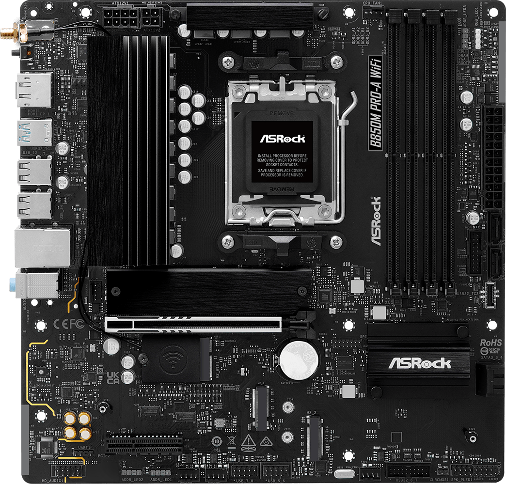 Доставка в 75000 населённых пунктов, ТК СДЭК, Яндекс и Почта РФ Все формы оплаты для физических и юридических лиц! Онлайн конфигуратор ПК, бесплатная сборка. Гарантия 2 года! Широкий ассортимент комплектующих. Более 30 лет на рынке! 15 250 ₽ ID товара: 756640 Материнская плата ASRock B850M Pro-A WiFi ОсновныеПроизводитель ........................................................................................................................................................................................................ Код производителя ........................................................................................................................................................................................................ B850M Pro-A WiFi Socket ........................................................................................................................................................................................................ Чипсет ........................................................................................................................................................................................................ ПамятьТип памяти ........................................................................................................................................................................................................ Количество слотов памяти ........................................................................................................................................................................................................ Максимальный объём поддерживаемой памяти ........................................................................................................................................................................................................ 256 Гб Поддержка ........................................................................................................................................................................................................ AMD EXPO, Intel XMP Дисковые контроллерыКонтроллер SATA ........................................................................................................................................................................................................ 4 x SATA-III (6 Гб/с) Поддержка RAID ........................................................................................................................................................................................................ 0, 1, 10 Слоты расширенияСлоты расширения ........................................................................................................................................................................................................ PCI-E 5.0 x16, PCI-E x4, 3 x PCI-E M.2 Тип слотов M.2 ........................................................................................................................................................................................................ - Key M, 2280 (PCIe Gen5x4); - Key M, 2280 (PCIe Gen4x4); - Key M, 2280 (PCIe Gen4x4). Аудио/ВидеоИнтегрированное видео ........................................................................................................................................................................................................ Звук ........................................................................................................................................................................................................ Аудио-контроллер ........................................................................................................................................................................................................ СетьСетевой интерфейс ........................................................................................................................................................................................................ 2.5 Gigabit Ethernet (2.5 Гбит/с), Wi-Fi, Bluetooth Сетевой контроллер ........................................................................................................................................................................................................ Dragon RTL8125BG Слот M.2 (E Key) ........................................................................................................................................................................................................ да Версия Wi-Fi ........................................................................................................................................................................................................ 6E Версия Bluetooth ........................................................................................................................................................................................................ 5.2 ИнтерфейсыРазъёмы на задней панели ........................................................................................................................................................................................................ 4 x USB 2.0, 2 x USB 3.2 Gen1, USB 3.2 Gen2, USB 3.2 Gen2 Type-C, HDMI, DisplayPort, RJ-45 ДополнительноКоличество фаз питания ..........................................................