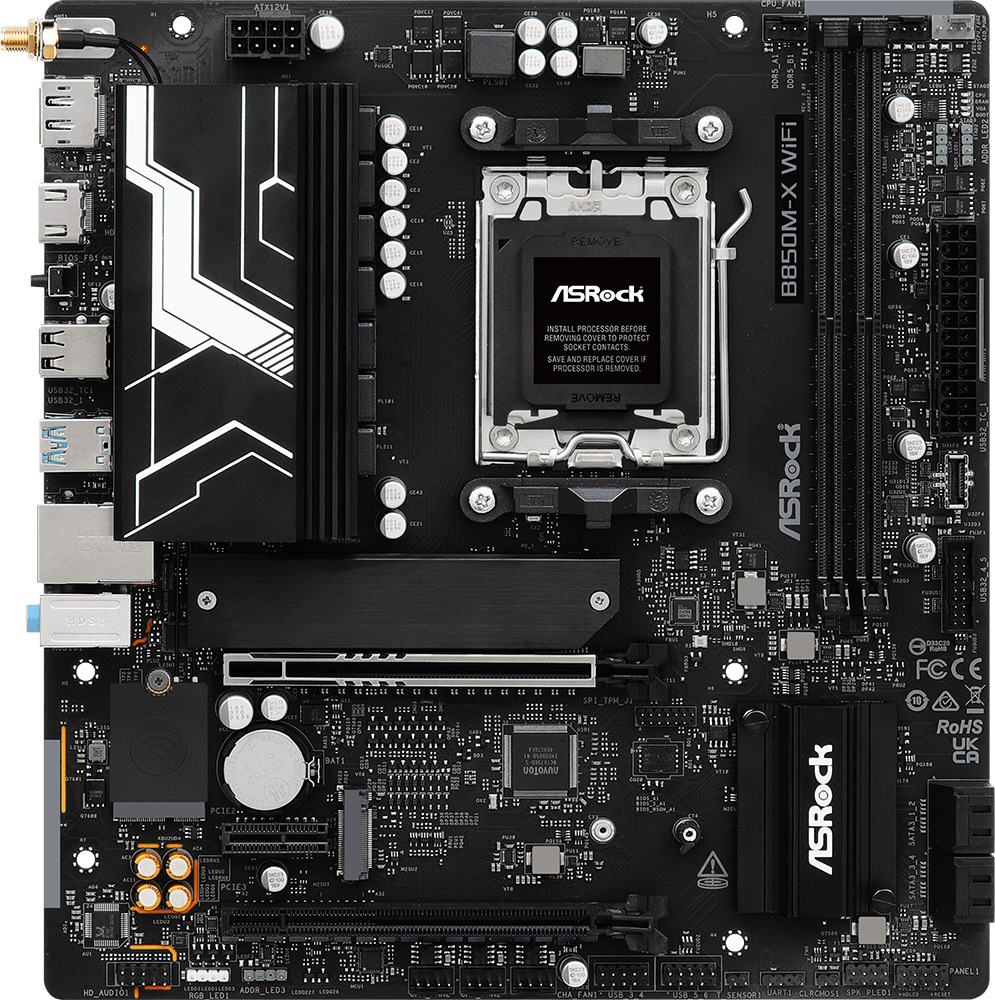 Доставка в 75000 населённых пунктов, ТК СДЭК, Яндекс и Почта РФ Все формы оплаты для физических и юридических лиц! Онлайн конфигураторы ПК и сервера, бесплатная сборка. Гарантия 2 года! Широкий ассортимент комплектующих. Более 30 лет на рынке! 11 640 ₽ ID товара: 756667 Материнская плата ASRock B850M-X WiFi R2.0 ОсновныеПроизводитель ........................................................................................................................................................................................................ Код производителя ........................................................................................................................................................................................................ B850M-X WiFi R2.0 Сокет ........................................................................................................................................................................................................ Чипсет ........................................................................................................................................................................................................ ПамятьТип памяти ........................................................................................................................................................................................................ Количество слотов памяти ........................................................................................................................................................................................................ Максимальный объём поддерживаемой памяти ........................................................................................................................................................................................................ 128 ГБ Поддержка ........................................................................................................................................................................................................ AMD EXPO, Intel XMP Дисковые контроллерыКонтроллер SATA ........................................................................................................................................................................................................ 4 x SATA-III (6 Гб/с) Поддержка RAID ........................................................................................................................................................................................................ 0, 1, 10 Слоты расширенияСлоты расширения ........................................................................................................................................................................................................ PCI-E 5.0 x16, PCI-E 4.0 x16, PCI-E x1, 2 x PCI-E M.2 Тип слотов M.2 ........................................................................................................................................................................................................ 2280 (PCI-E 5.0 x4), 2260/2280 (PCI-E 4.0 x4) Аудио/ВидеоИнтегрированное видео ........................................................................................................................................................................................................ Звук ........................................................................................................................................................................................................ Аудио-контроллер ........................................................................................................................................................................................................ СетьСетевой интерфейс ........................................................................................................................................................................................................ 2.5 Gigabit Ethernet (2.5 Гб/с), Wi-Fi, Bluetooth Сетевой контроллер ........................................................................................................................................................................................................ Dragon RTL8125BG Слот M.2 (E Key) ........................................................................................................................................................................................................ да Версия Wi-Fi ........................................................................................................................................................................................................ 6E Версия Bluetooth ........................................................................................................................................................................................................ 5.2 ИнтерфейсыРазъёмы на задней панели ........................................................................................................................................................................................................ 2 x USB 2.0, 3 x USB 3.2 Gen1, USB 3.2 Gen1 Type-C, HDMI, DisplayPort, RJ-45 ДополнительноКоличество фаз питания ............................................................................