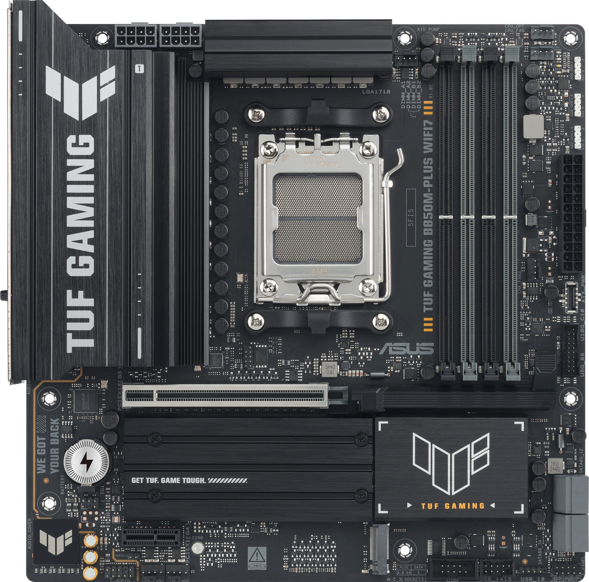 Доставка в 75000 населённых пунктов, ТК СДЭК, Яндекс и Почта РФ Все формы оплаты для физических и юридических лиц! Онлайн конфигуратор ПК, бесплатная сборка. Гарантия 2 года! Широкий ассортимент комплектующих. Более 30 лет на рынке! 26 240 ₽ ID товара: 757906 Материнская плата ASUS TUF GAMING B850M-PLUS WIFI7 ОсновныеПроизводитель ........................................................................................................................................................................................................ Код производителя ........................................................................................................................................................................................................ TUF GAMING B850M-PLUS WIFI7 Socket ........................................................................................................................................................................................................ Чипсет ........................................................................................................................................................................................................ ПамятьТип памяти ........................................................................................................................................................................................................ Количество слотов памяти ........................................................................................................................................................................................................ Максимальный объём поддерживаемой памяти ........................................................................................................................................................................................................ 256 Гб Поддержка ........................................................................................................................................................................................................ AMD EXPO Дисковые контроллерыКонтроллер SATA ........................................................................................................................................................................................................ 4 x SATA-III (6 Гб/с) Поддержка RAID ........................................................................................................................................................................................................ 0, 1, 5, 10 Слоты расширенияСлоты расширения ........................................................................................................................................................................................................ PCI-E 5.0 x16, PCI-E x1, 3 x PCI-E M.2 Тип слотов M.2 ........................................................................................................................................................................................................ - Key M, 2280 (PCIe 5.0 x4); - Key M, 2242/2260/2280 (PCIe 4.0 x4); - Key M, 2280 (PCIe 4.0 x4). Поддерживаемые режимы PCI-Express ........................................................................................................................................................................................................ AMD Ryzen 9000 & 7000 Series Desktop Processors: 1 x PCIe 5.0 x16 slot (supports x16 mode). AMD Ryzen 8000 Series Desktop Processors: 1 x PCIe 4.0 x16 slot (supports x8/x4 mode). Аудио/ВидеоИнтегрированное видео ........................................................................................................................................................................................................ Звук ........................................................................................................................................................................................................ Аудио-контроллер ........................................................................................................................................................................................................ СетьСетевой интерфейс ........................................................................................................................................................................................................ 2.5 Gigabit Ethernet (2.5 Гбит/с), Wi-Fi, Bluetooth Сетевой контроллер ........................................................................................................................................................................................................ Realtek Версия Wi-Fi ........................................................................................................................................................................................................ 7, модуль Wi-Fi 7 поддерживается только в Microsoft Windows 11 версии 24H2 или более поздних Версия Bluetooth ........................................................................................................................................................................................................ 5.4 ИнтерфейсыРазъёмы на задней панели .............................................................