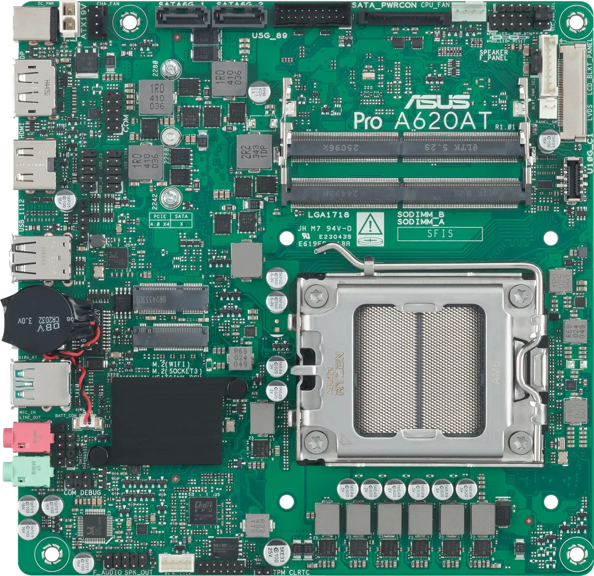 Доставка в 75000 населённых пунктов, ТК СДЭК, Яндекс и Почта РФ Все формы оплаты для физических и юридических лиц! Онлайн конфигуратор ПК, бесплатная сборка. Гарантия 2 года! Широкий ассортимент комплектующих. Более 30 лет на рынке! 13 320 ₽ ID товара: 758791 Материнская плата ASUS PRO A620AT-CSM ОсновныеПроизводитель ........................................................................................................................................................................................................ Код производителя ........................................................................................................................................................................................................ PRO A620AT-CSM Socket ........................................................................................................................................................................................................ Количество сокетов ........................................................................................................................................................................................................ Поддерживаемые процессоры ........................................................................................................................................................................................................ AMD Ryzen 9000 & 8000 & 7000 Series Максимальное тепловыделение ........................................................................................................................................................................................................ 65 Вт Чипсет ........................................................................................................................................................................................................ ПамятьСтандарт памяти ........................................................................................................................................................................................................ Тип поддерживаемой памяти ........................................................................................................................................................................................................ UDIMM, ECC Количество слотов памяти ........................................................................................................................................................................................................ Поддержка частот ........................................................................................................................................................................................................ 4800 МГц, 5200 МГц, 5600 МГц, 6000 МГц, 6400 МГц Максимальный объём памяти ........................................................................................................................................................................................................ Дисковые контроллеры и слоты расширенияДисковые контроллеры ........................................................................................................................................................................................................ 2 x SATA-III (6 Гб/с) Слоты расширения ........................................................................................................................................................................................................ 2 x M.2 Интерфейс M.2 ........................................................................................................................................................................................................ PCI-E Размер M.2 ........................................................................................................................................................................................................ 2230, 2280 Аудио/видеоЗвук ........................................................................................................................................................................................................ да СетьСетевой интерфейс ........................................................................................................................................................................................................ Gigabit Ethernet (1 Гбит/с) ПодключениеРазъёмы на задней панели ........................................................................................................................................................................................................ 2 x USB 2.0, 2 x USB 3.2 Gen 2, DisplayPort, HDMI, RJ-45 ДополнительноФорм-фактор ........................................................................................................................................................................................................ Дополнительная информация ........................................................................................................................................................................................................ DASH LAN Гарантия .........................................................................................