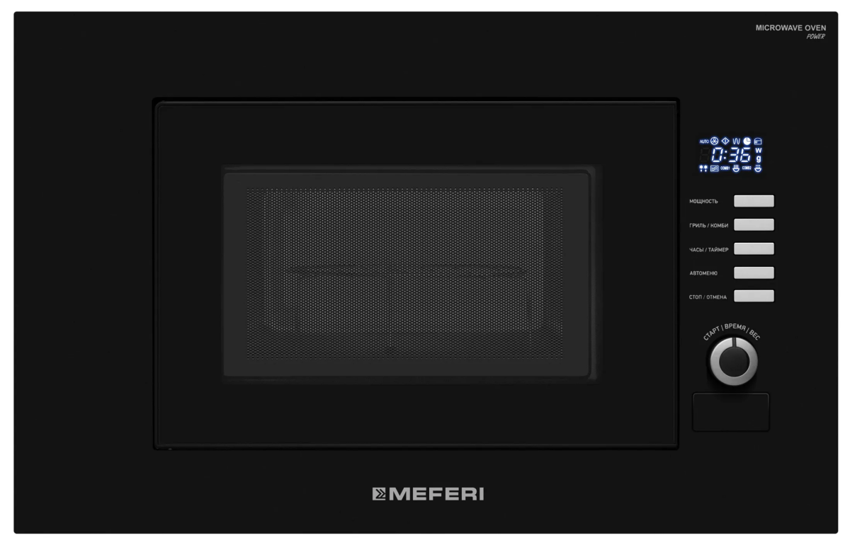 Доставка в 75000 населённых пунктов, ТК СДЭК, Яндекс и Почта РФ Все формы оплаты для физических и юридических лиц! Онлайн конфигуратор ПК, бесплатная сборка. Гарантия 2 года! Широкий ассортимент комплектующих. Более 30 лет на рынке! 18 350 ₽ ID товара: 759769 Встраиваемая микроволновая печь MEFERI MMO6020BK SLIM POWER ОсновныеПроизводитель ........................................................................................................................................................................................................ Код производителя ........................................................................................................................................................................................................ MMO6020BK SLIM POWER Мощность микроволн ........................................................................................................................................................................................................ 700 Вт Внутренний объем ........................................................................................................................................................................................................ 20 л Расположение ........................................................................................................................................................................................................ Диаметр поддона ........................................................................................................................................................................................................ 245 мм Внутреннее покрытие камеры ........................................................................................................................................................................................................ Режимы работыКоличество уровней мощности ........................................................................................................................................................................................................ 6 Гриль ........................................................................................................................................................................................................ да Мощность гриля ........................................................................................................................................................................................................ 900 Вт Комбинированные режимы ........................................................................................................................................................................................................ 45.5%/54.5% или 54.5%/45.5% (мощность микроволн/гриля) Панель управленияТип управления ........................................................................................................................................................................................................ Дисплей ........................................................................................................................................................................................................ да Переключатели ........................................................................................................................................................................................................ кнопочные/поворотные Таймер ........................................................................................................................................................................................................ до 95 мин Функция отсрочки пуска ........................................................................................................................................................................................................ да ПрограммыАвтоматическое приготовление ........................................................................................................................................................................................................ да Количество рецептов автоприготовления ........................................................................................................................................................................................................ 8 Автоматическая разморозка ........................................................................................................................................................................................................ да, по времени/по весу ОсобенностиВнутреннее освещение ........................................................................................................................................................................................................ да Блокировка от детей ........................................................................................................................................................................................................ да Дверца .............................................................................................