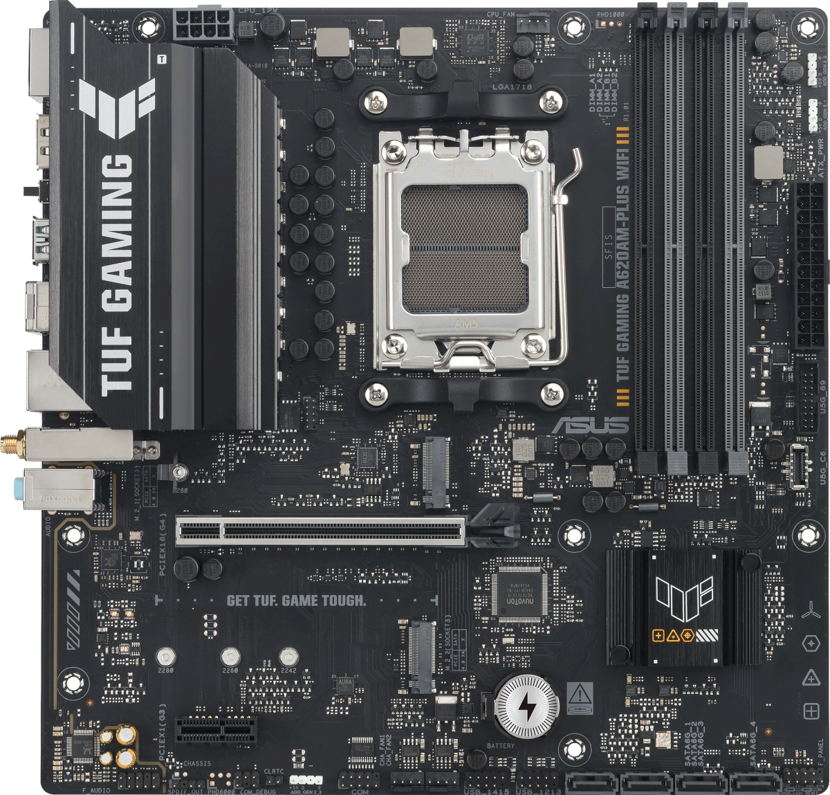 Доставка в 75000 населённых пунктов, ТК СДЭК, Яндекс и Почта РФ Все формы оплаты для физических и юридических лиц! Онлайн конфигураторы ПК и сервера, бесплатная сборка. Гарантия 2 года! Широкий ассортимент комплектующих. Более 30 лет на рынке! 17 010 ₽ ID товара: 760171 Материнская плата ASUS TUF GAMING A620AM-PLUS WIFI ОсновныеПроизводитель ........................................................................................................................................................................................................ Код производителя ........................................................................................................................................................................................................ TUF GAMING A620AM-PLUS WIFI Сокет ........................................................................................................................................................................................................ Чипсет ........................................................................................................................................................................................................ ПамятьТип памяти ........................................................................................................................................................................................................ Количество слотов памяти ........................................................................................................................................................................................................ Максимальный объём поддерживаемой памяти ........................................................................................................................................................................................................ 256 Гб Поддержка ........................................................................................................................................................................................................ AMD EXPO Дисковые контроллерыКонтроллер SATA ........................................................................................................................................................................................................ 4 x SATA-III (6 Гб/с) Поддержка RAID ........................................................................................................................................................................................................ 0, 1, 5, 10 Слоты расширенияСлоты расширения ........................................................................................................................................................................................................ PCI-E 4.0 x16, PCI-E x1, 2 x PCI-E M.2 Тип слотов M.2 ........................................................................................................................................................................................................ - Key M, 2280 (PCIe 4.0 x4); - Key M, 2242/2260/2280 (PCIe 4.0 x4). Аудио/ВидеоИнтегрированное видео ........................................................................................................................................................................................................ Звук ........................................................................................................................................................................................................ Аудио-контроллер ........................................................................................................................................................................................................ СетьСетевой интерфейс ........................................................................................................................................................................................................ 2.5 Gigabit Ethernet (2.5 Гбит/с), Wi-Fi, Bluetooth Сетевой контроллер ........................................................................................................................................................................................................ Realtek Версия Wi-Fi ........................................................................................................................................................................................................ 6 Версия Bluetooth ........................................................................................................................................................................................................ 5.3 ИнтерфейсыРазъёмы на задней панели ........................................................................................................................................................................................................ PS/2, 4 x USB 2.0, 2 x USB 3.2 Gen2, HDMI, 2 x DisplayPort, RJ-45 ДополнительноКоличество фаз питания ........................................................................................................................................................................................................ Радиатор на подсистеме питания (мосфетах) .........................