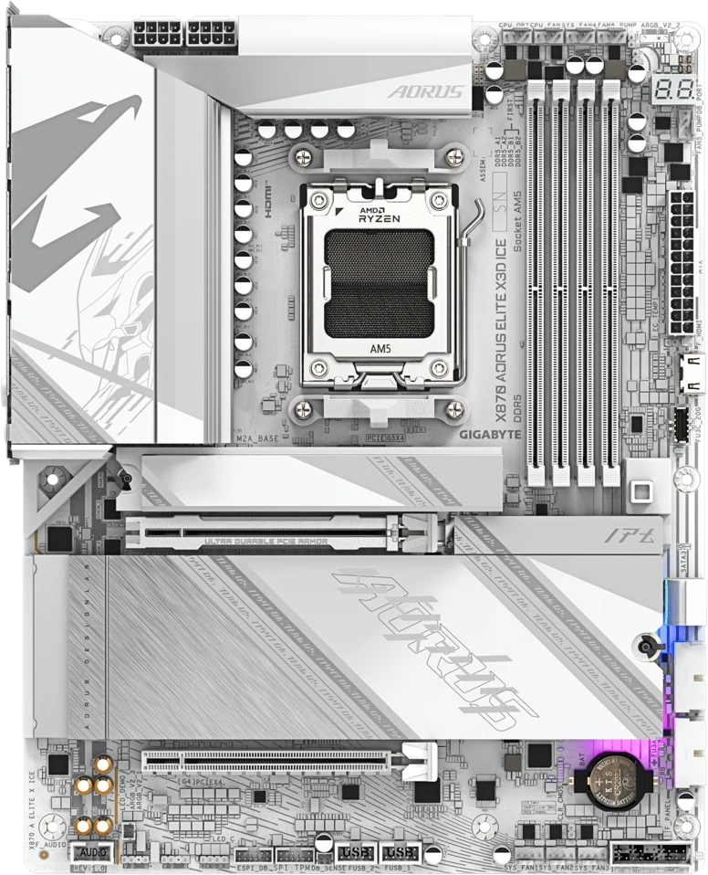 | Доставка в 75000 населённых  пунктов, ТК СДЭК, Яндекс и Почта РФ Все формы оплаты для  физических и юридических лиц! Онлайн конфигуратор ПК,  бесплатная сборка. Гарантия 2 года! Широкий ассортимент  комплектующих. Более 30 лет на рынке! 30 960 ₽ ID товара: 760179 Материнская плата Gigabyte X870 AORUS ELITE X3D ICE ОсновныеПроизводитель  ........................................................................................................................................................................................................ Код производителя  ........................................................................................................................................................................................................ X870 AORUS ELITE X3D ICE/X870 A ELITE X ICE Socket  ........................................................................................................................................................................................................ Чипсет  ........................................................................................................................................................................................................ ПамятьТип памяти  ........................................................................................................................................................................................................ Количество слотов памяти  ........................................................................................................................................................................................................ Максимальный объём поддерживаемой памяти  ........................................................................................................................................................................................................ 256 Гб Поддержка  ........................................................................................................................................................................................................ AMD EXPO, Intel XMP Дисковые контроллерыКонтроллер SATA  ........................................................................................................................................................................................................ 2 x SATA-III (6 Гб/с) Поддержка RAID  ........................................................................................................................................................................................................ 0, 1 Слоты расширенияСлоты расширения  ........................................................................................................................................................................................................ PCI-E 5.0 x16, PCI-E 4.0 x16, 4 x PCI-E M.2 Тип слотов M.2  ........................................................................................................................................................................................................ - Socket 3, M key, 25110/22110/2580/2280 (PCIe 5.0 x4/x2); - Socket 3, M key, 22110/2280 (PCIe 5.0 x4/x2); - Socket 3, M key, 22110/2280 (PCIe 4.0 x4/x2); - Socket 3, M key, 22110/2280 (PCIe 4.0 x4/x2). Поддерживаемые режимы PCI-Express  ........................................................................................................................................................................................................ x16/x4 Аудио/ВидеоИнтегрированное видео  ........................................................................................................................................................................................................ Звук  ........................................................................................................................................................................................................ Аудио-контроллер  ........................................................................................................................................................................................................ СетьСетевой интерфейс  ........................................................................................................................................................................................................ 5 Gigabit Ethernet (5 Гбит/с), Wi-Fi, Bluetooth Сетевой контроллер  ........................................................................................................................................................................................................ Realtek Версия Wi-Fi  ........................................................................................................................................................................................................ 7, для правильной работы функций Wi-Fi 7 требуется Windows 11 SV3 (драйвер для Windows 10 не поддерживается) Версия Bluetooth  ........................................................................................................................................................................................................ 5.4 ИнтерфейсыРазъёмы на задней панели  .....