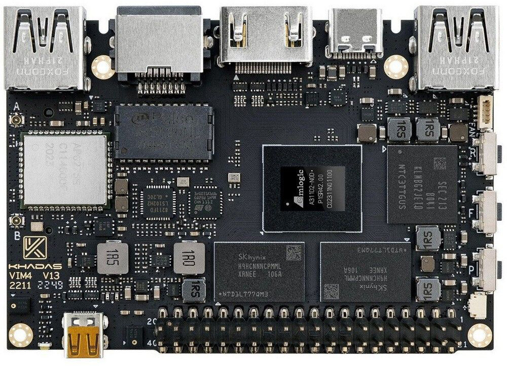 Доставка в 75000 населённых пунктов, ТК СДЭК, Яндекс и Почта РФ Все формы оплаты для физических и юридических лиц! Онлайн конфигуратор ПК, бесплатная сборка. Гарантия 2 года! Широкий ассортимент комплектующих. Более 30 лет на рынке! 22 580 ₽ ID товара: 760316 Одноплатный компьютер Khadas New VIM4 ОсновныеПроизводитель ........................................................................................................................................................................................................ Код производителя ........................................................................................................................................................................................................ KVIM4-N-01 Тип ........................................................................................................................................................................................................ ПроцессорПроизводитель ........................................................................................................................................................................................................ Модель ........................................................................................................................................................................................................ A311D2 Тактовая частота ........................................................................................................................................................................................................ 2200 МГц Количество ядер ........................................................................................................................................................................................................ 4 Материнская платаЧипсет ........................................................................................................................................................................................................ встроен в процессор Оперативная памятьОбъём установленной памяти ........................................................................................................................................................................................................ Тип памяти ........................................................................................................................................................................................................ Накопители данныхОбъём установленного SSD ........................................................................................................................................................................................................ Интерфейс накопителя ........................................................................................................................................................................................................ ПриводОптический привод ........................................................................................................................................................................................................ ВидеоТип графического контроллера ........................................................................................................................................................................................................ СетьСетевой интерфейс ........................................................................................................................................................................................................ Gigabit Ethernet, Wi-Fi, Bluetooth Стандарт Wi-Fi ........................................................................................................................................................................................................ Wi-Fi 6 (802.11ax) Стандарт Bluetooth ........................................................................................................................................................................................................ 5.1 Разъёмы и интерфейсыРазъёмы ........................................................................................................................................................................................................ USB-A 2.0 (480 Мбит/с), USB-A 3.2 Gen1 (5 Гбит/с), USB-С 2.0 (480 Мбит/с), HDMI 1.4, RJ-45 ДополнительноСлоты расширения ........................................................................................................................................................................................................ M.2 2280 (для SSD) Кардридер ........................................................................................................................................................................................................ да Дополнительная информация ........................................................................................................................................................................................................ разъемы: 1x 40-pin Expansion header (I2S, I2C, UART, PWM, ADC, USB, SPDIF, MCU-I/D) Гарантия .............................................