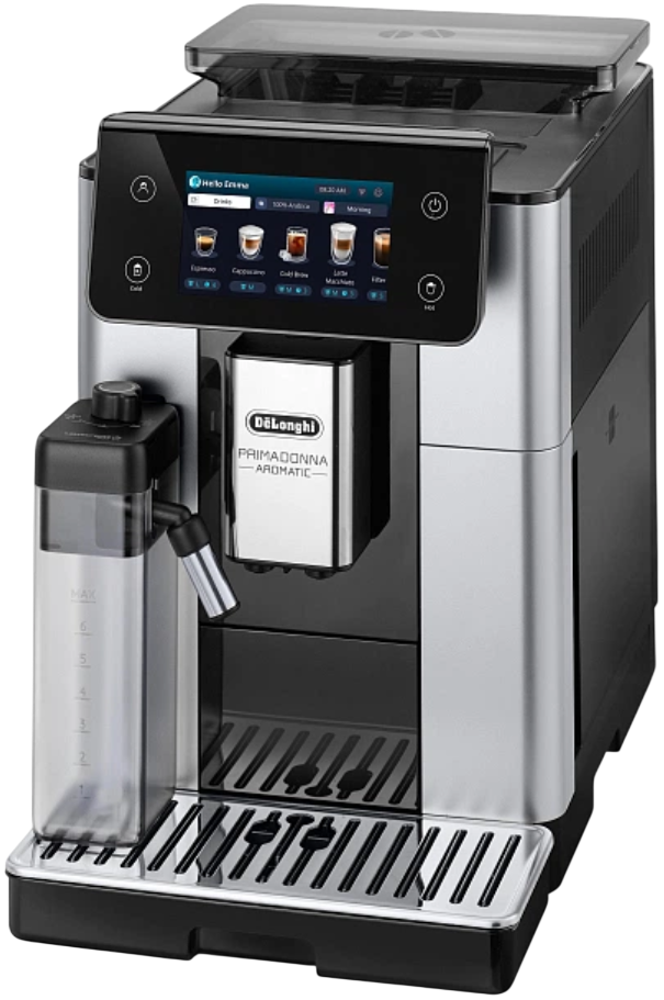Доставка в 75000 населённых пунктов, ТК СДЭК, Яндекс и Почта РФ Все формы оплаты для физических и юридических лиц! Онлайн конфигураторы ПК и сервера, бесплатная сборка. Гарантия 2 года! Широкий ассортимент комплектующих. Более 30 лет на рынке! 158 310 ₽ ID товара: 767549 Кофемашина DeLonghi ECAM 630.75.TSM PrimaDonna Aromatic ОсновныеПроизводитель ........................................................................................................................................................................................................ Код производителя ........................................................................................................................................................................................................ ECAM630.75.TSM Тип ........................................................................................................................................................................................................ Тип управления ........................................................................................................................................................................................................ сенсорное Используемый кофе ........................................................................................................................................................................................................ зерновой, молотый Тип нагревателя ........................................................................................................................................................................................................ термоблок Мощность ........................................................................................................................................................................................................ 1450 Вт Капучинатор ........................................................................................................................................................................................................ да Приготовление капучино ........................................................................................................................................................................................................ автоматическое Тип напитка ........................................................................................................................................................................................................ американо, горячее молоко, доппио, капучино, кортадо, латте, латте-макиато, лонг блэк, лунго, макиато, фильтр-кофе, флэт уайт, чай, эспрессо Объём резервуара для воды ........................................................................................................................................................................................................ 2.2 л Максимальное давление ........................................................................................................................................................................................................ 19 бар Настройки ........................................................................................................................................................................................................ количество пены/молока, крепость кофе Дополнительные функции ........................................................................................................................................................................................................ автоотключение, одновременное приготовление двух чашек, подача горячей воды, подогрев чашек КонструкцияОсобенности конструкции ........................................................................................................................................................................................................ дисплей, регулировка диспенсера по высоте, съёмный лоток для сбора капель Встроенная кофемолка ........................................................................................................................................................................................................ да Ёмкость контейнера для зёрен ........................................................................................................................................................................................................ 500 г Количество степеней помола ........................................................................................................................................................................................................ 7 ДополнительноМатериал корпуса ........................................................................................................................................................................................................ металл Размеры (ШхВхГ) .........................................................................................................