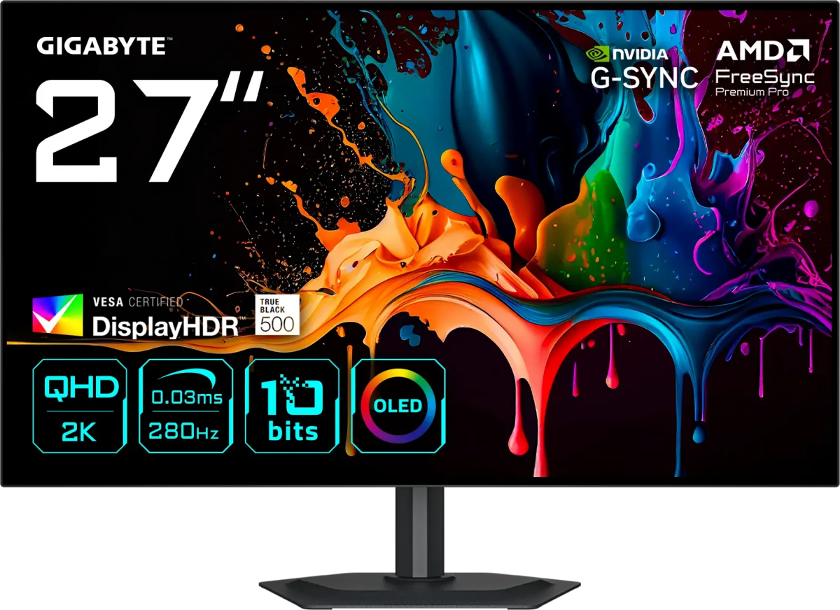 Доставка в 75000 населённых пунктов, ТК СДЭК, Яндекс и Почта РФ Все формы оплаты для физических и юридических лиц! Онлайн конфигураторы ПК и сервера, бесплатная сборка. Гарантия 2 года! Широкий ассортимент комплектующих. Более 30 лет на рынке! ID товара: 769339 Монитор Gigabyte 27" MO27Q28G ОсновныеПроизводитель ........................................................................................................................................................................................................ Код производителя ........................................................................................................................................................................................................ MO27Q28G Диагональ ........................................................................................................................................................................................................ 27" МатрицаТип матрицы ........................................................................................................................................................................................................ Тип OLED-матрицы ........................................................................................................................................................................................................ WOLED, 4-е поколение Битность матрицы ........................................................................................................................................................................................................ 10 бит Широкоформатный монитор ........................................................................................................................................................................................................ да Разрешение экрана ........................................................................................................................................................................................................ Частота обновления кадров ........................................................................................................................................................................................................ 280 Гц Поверхность экрана ........................................................................................................................................................................................................ Яркость ........................................................................................................................................................................................................ 335 кд/м2 Пиковая яркость ........................................................................................................................................................................................................ 1500 кд/м2 Контрастность ........................................................................................................................................................................................................ 1500000:1 Время отклика ........................................................................................................................................................................................................ 0.03 мс, GtG Угол обзора по горизонтали ........................................................................................................................................................................................................ 178° Угол обзора по вертикали ........................................................................................................................................................................................................ 178° Цветовой охват DCI-P3 ........................................................................................................................................................................................................ 99.5 % Максимальное количество цветов ........................................................................................................................................................................................................ 1.07 млрд ОсобенностиПоддержка HDR ........................................................................................................................................................................................................ да Версия HDR ........................................................................................................................................................................................................ Переменная частота обновления ........................................................................................................................................................................................................ nVidia G-Sync Blue Light Filter/Shield ........................................................................................................................................................................................................ да Технология Flicker-free .............................................................................