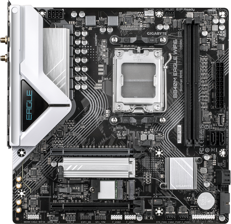 Доставка в 75000 населённых пунктов, ТК СДЭК, Яндекс и Почта РФ Все формы оплаты для физических и юридических лиц! Онлайн конфигураторы ПК и сервера, бесплатная сборка. Гарантия 2 года! Широкий ассортимент комплектующих. Более 30 лет на рынке! 12 920 ₽ ID товара: 769798 Материнская плата Gigabyte B840M EAGLE WIFI6 ОсновныеПроизводитель ........................................................................................................................................................................................................ Код производителя ........................................................................................................................................................................................................ B840M EAGLE WIFI6 Сокет ........................................................................................................................................................................................................ Чипсет ........................................................................................................................................................................................................ ПамятьТип памяти ........................................................................................................................................................................................................ Количество слотов памяти ........................................................................................................................................................................................................ Максимальный объём поддерживаемой памяти ........................................................................................................................................................................................................ 128 Гб Поддержка ........................................................................................................................................................................................................ AMD EXPO, Intel XMP Дисковые контроллерыКонтроллер SATA ........................................................................................................................................................................................................ 4 x SATA-III (6 Гб/с) Поддержка RAID ........................................................................................................................................................................................................ 0, 1, 10 Слоты расширенияСлоты расширения ........................................................................................................................................................................................................ PCI-E 4.0 x16, PCI-E 3.0 x16, 2 x PCI-E M.2 Тип слотов M.2 ........................................................................................................................................................................................................ 2280/2580 (PCI-E 4.0 x4), 2280 (PCI-E 3.0 x2) Поддерживаемые режимы PCI-Express ........................................................................................................................................................................................................ x16/x4 Аудио/ВидеоИнтегрированное видео ........................................................................................................................................................................................................ Звук ........................................................................................................................................................................................................ Аудио-контроллер ........................................................................................................................................................................................................ СетьСетевой интерфейс ........................................................................................................................................................................................................ 2.5 Gigabit Ethernet (2.5 Гбит/с), Wi-Fi, Bluetooth Сетевой контроллер ........................................................................................................................................................................................................ Realtek Версия Wi-Fi ........................................................................................................................................................................................................ 6 Версия Bluetooth ........................................................................................................................................................................................................ 5.3 ИнтерфейсыРазъёмы на задней панели ........................................................................................................................................................................................................ PS/2, 4 x USB 2.0, 2 x USB 3.2 Gen1, HDMI, DisplayPort, RJ-45 ДополнительноКоличество фаз питания ......................................................................