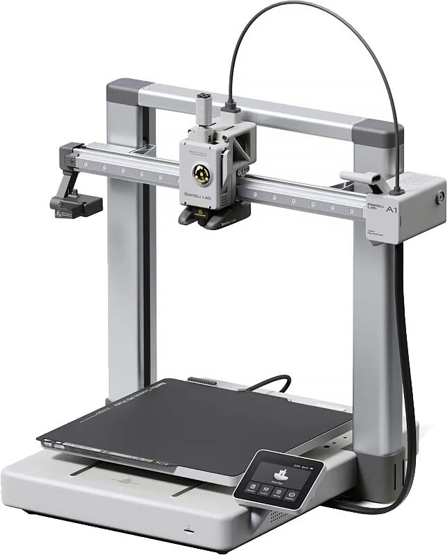 Доставка в 75000 населённых пунктов, ТК СДЭК, Яндекс и Почта РФ Все формы оплаты для физических и юридических лиц! Онлайн конфигураторы ПК и сервера, бесплатная сборка. Гарантия 2 года! Широкий ассортимент комплектующих. Более 30 лет на рынке! 29 700 ₽ ID товара: 770155 3D принтер Bambu Lab A1 ОсновныеПроизводитель ........................................................................................................................................................................................................ Код производителя ........................................................................................................................................................................................................ PF002-A-EU2 Технология печати ........................................................................................................................................................................................................ Корпус ........................................................................................................................................................................................................ КонструкцияКоличество экструдеров ........................................................................................................................................................................................................ 1 Диаметр экструдера ........................................................................................................................................................................................................ 0.4 мм Температура экструдера ........................................................................................................................................................................................................ до 300°C Подогреваемый стол ........................................................................................................................................................................................................ да Температура стола ........................................................................................................................................................................................................ до 100°C ПечатьДиаметр нити ........................................................................................................................................................................................................ 1.75 мм Размер печати ........................................................................................................................................................................................................ 256х256х256 мм Скорость печати ........................................................................................................................................................................................................ 500 мм/с Контроль наличия пластика ........................................................................................................................................................................................................ да Система возобновления печати ........................................................................................................................................................................................................ да Материал печати ........................................................................................................................................................................................................ PETG, PLA, PVA, TPU ДополнительноИнтерфейсы ........................................................................................................................................................................................................ Wi-Fi Камера ........................................................................................................................................................................................................ 1080P Дисплей ........................................................................................................................................................................................................ 3.5" Поддерживаемые форматы ........................................................................................................................................................................................................ OBJ, STL Совместимые ОС ........................................................................................................................................................................................................ MacOS, Windows Размеры (ШхВхГ) ........................................................................................................................................................................................................ 410 x 430 x 385 мм Вес ........................................................................................................................................................................................................ 8.3 кг Гарантия ....................................................................................................................