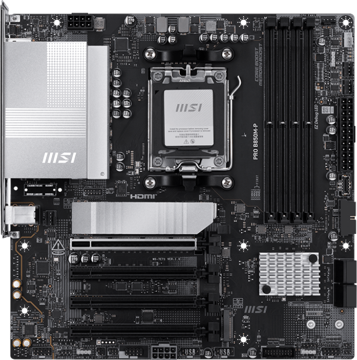Доставка в 75000 населённых пунктов, ТК СДЭК, Яндекс и Почта РФ Все формы оплаты для физических и юридических лиц! Онлайн конфигураторы ПК и сервера, бесплатная сборка. Гарантия 2 года! Широкий ассортимент комплектующих. Более 30 лет на рынке! 15 400 ₽ ID товара: 771213 Материнская плата MSI PRO B850M-P ОсновныеПроизводитель ........................................................................................................................................................................................................ Код производителя ........................................................................................................................................................................................................ PRO B850M-P Сокет ........................................................................................................................................................................................................ Чипсет ........................................................................................................................................................................................................ ПамятьТип памяти ........................................................................................................................................................................................................ Количество слотов памяти ........................................................................................................................................................................................................ Максимальный объём поддерживаемой памяти ........................................................................................................................................................................................................ 256 Гб Поддержка ........................................................................................................................................................................................................ AMD EXPO Дисковые контроллерыКонтроллер SATA ........................................................................................................................................................................................................ 4 x SATA-III (6 Гб/с) Поддержка RAID ........................................................................................................................................................................................................ 0, 1, 10 Слоты расширенияСлоты расширения ........................................................................................................................................................................................................ PCI-E 5.0 x16, 3 x PCI-E 3.0 x16, 3 x PCI-E M.2 Тип слотов M.2 ........................................................................................................................................................................................................ - Key M, 2280/2260 (PCIe 5.0 x4); - Key M, 2280/2260 (PCIe 4.0 x4); - Key M, 2280 (PCIe 4.0 x2). Поддерживаемые режимы PCI-Express ........................................................................................................................................................................................................ x16/x1/x1/x1 Аудио/ВидеоИнтегрированное видео ........................................................................................................................................................................................................ Звук ........................................................................................................................................................................................................ Аудио-контроллер ........................................................................................................................................................................................................ СетьСетевой интерфейс ........................................................................................................................................................................................................ 5 Gigabit Ethernet (5 Гбит/с) Сетевой контроллер ........................................................................................................................................................................................................ Realtek RTL8126VB ИнтерфейсыРазъёмы на задней панели ........................................................................................................................................................................................................ 4 x USB 2.0, 2 x USB 3.2 Gen1, USB 3.2 Gen2, USB 3.2 Gen2 Type-C, HDMI, DisplayPort, RJ-45 ДополнительноКоличество фаз питания ........................................................................................................................................................................................................ Радиатор на подсистеме питания (мосфетах) ................................................................................................................................................................................................