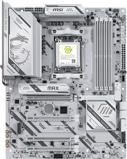 Доставка в 75000 населённых пунктов, ТК СДЭК, Яндекс и Почта РФ Все формы оплаты для физических и юридических лиц! Онлайн конфигураторы ПК и сервера, бесплатная сборка. Гарантия 2 года! Широкий ассортимент комплектующих. Более 30 лет на рынке! ID товара: 771769 Материнская плата MSI MAG B850 GAMING PLUS MAX WIFI ОсновныеПроизводитель ........................................................................................................................................................................................................ Код производителя ........................................................................................................................................................................................................ MAG B850 GAMING PLUS MAX WIFI Сокет ........................................................................................................................................................................................................ Чипсет ........................................................................................................................................................................................................ ПамятьТип памяти ........................................................................................................................................................................................................ Количество слотов памяти ........................................................................................................................................................................................................ Максимальный объём поддерживаемой памяти ........................................................................................................................................................................................................ 256 ГБ Поддержка ........................................................................................................................................................................................................ AMD EXPO Дисковые контроллерыКонтроллер SATA ........................................................................................................................................................................................................ 4 x SATA-III (6 Гб/с) Поддержка RAID ........................................................................................................................................................................................................ 0, 1 Слоты расширенияСлоты расширения ........................................................................................................................................................................................................ PCI-E 5.0 x16, PCI-E 4.0 x16, 2 x PCI-E 3.0 x16, 3 x PCI-E M.2 Тип слотов M.2 ........................................................................................................................................................................................................ 2260/2280 (PCI-E 5.0 x4), 2260/2280 (PCI-E 4.0 x2), 2280/22110 (PCI-E 4.0 x4) Поддерживаемые режимы PCI-Express ........................................................................................................................................................................................................ x16/x4/x1/x1 Аудио/ВидеоИнтегрированное видео ........................................................................................................................................................................................................ Звук ........................................................................................................................................................................................................ Аудио-контроллер ........................................................................................................................................................................................................ СетьСетевой интерфейс ........................................................................................................................................................................................................ 5 Gigabit Ethernet (5 Гб/с), Wi-Fi, Bluetooth Сетевой контроллер ........................................................................................................................................................................................................ Realtek RTL8126 Слот M.2 (E Key) ........................................................................................................................................................................................................ да Версия Wi-Fi ........................................................................................................................................................................................................ 7, модуль Wi-Fi 7 поддерживается только в Microsoft Windows 11 версии 24H2 или более поздних Версия Bluetooth ........................................................................................................................................................................................................ 5.4 ИнтерфейсыРазъёмы на задней