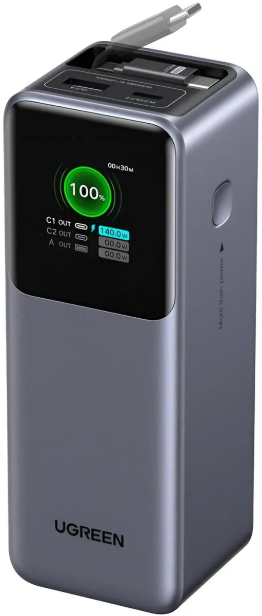 Доставка в 75000 населённых пунктов, ТК СДЭК, Яндекс и Почта РФ Все формы оплаты для физических и юридических лиц! Онлайн конфигураторы ПК и сервера, бесплатная сборка. Гарантия 2 года! Широкий ассортимент комплектующих. Более 30 лет на рынке! 7 990 ₽ ID товара: 772141 Внешний аккумулятор UGREEN 20000mAh 165W Nexode Smart Display Power Bank (95670B) ОсновныеПроизводитель ........................................................................................................................................................................................................ Код производителя ........................................................................................................................................................................................................ 95670B Ёмкость ........................................................................................................................................................................................................ 20000 мАч Ёмкость (Вт/ч) ........................................................................................................................................................................................................ 72 Вт/ч Мощность ........................................................................................................................................................................................................ 165 Вт Одновременная зарядка трёх устройств ........................................................................................................................................................................................................ да ВходВходные разъёмы ........................................................................................................................................................................................................ 2 x USB Type-C ВыходВыходные разъёмы ........................................................................................................................................................................................................ 2 x USB Type-C, USB БатареяТип ........................................................................................................................................................................................................ Li-Ion ДополнительноЗащита от короткого замыкания ........................................................................................................................................................................................................ да Защита от перегрузки ........................................................................................................................................................................................................ да Защита от перегрева ........................................................................................................................................................................................................ да Индикатор заряда ........................................................................................................................................................................................................ да Цвет ........................................................................................................................................................................................................ серый Дополнительная информация ........................................................................................................................................................................................................ дисплей с отображением различных параметров зарядки; длина встроенного кабеля: 0.65 м Гарантия ........................................................................................................................................................................................................ 6 мес. Сайт производителя ........................................................................................................................................................................................................ |