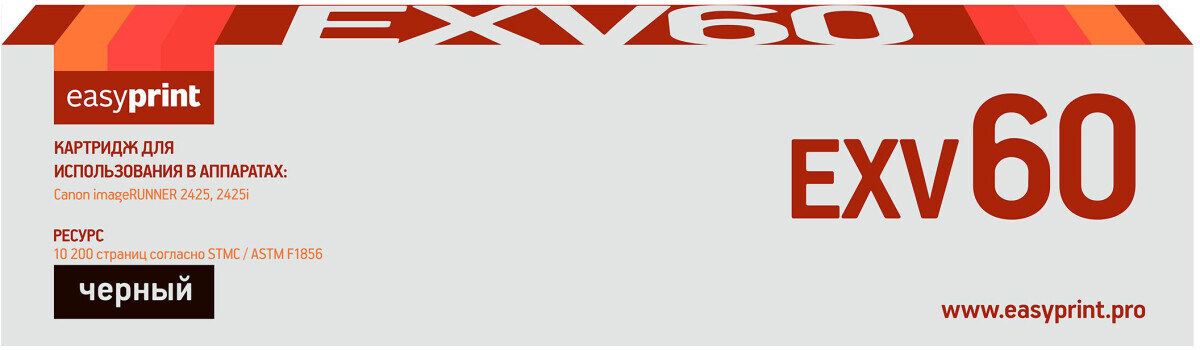 Доставка в 75000 населённых пунктов, ТК СДЭК, Яндекс и Почта РФ Все формы оплаты для физических и юридических лиц! Онлайн конфигураторы ПК и сервера, бесплатная сборка. Гарантия 2 года! Широкий ассортимент комплектующих. Более 30 лет на рынке! 870 ₽ ID товара: 772338 Картридж EasyPrint LC-EXV60 Black ОсновныеПроизводитель ........................................................................................................................................................................................................ Код производителя ........................................................................................................................................................................................................ LC-EXV60 Тип ........................................................................................................................................................................................................ Тип печати ........................................................................................................................................................................................................ Тип совместимости ........................................................................................................................................................................................................ Совместимый производитель ........................................................................................................................................................................................................ Canon Цвет ........................................................................................................................................................................................................ чёрный (black) Совместимость ........................................................................................................................................................................................................ Canon imageRUNNER 2425 (4293C003), Canon imageRUNNER 2425i MFP (4293C004) ДополнительноРесурс ........................................................................................................................................................................................................ 10200 стр. Количество в упаковке ........................................................................................................................................................................................................ 1 шт. Сайт производителя ........................................................................................................................................................................................................ |