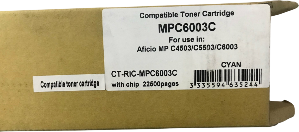 Доставка в 75000 населённых пунктов, ТК СДЭК, Яндекс и Почта РФ Все формы оплаты для физических и юридических лиц! Онлайн конфигураторы ПК и сервера, бесплатная сборка. Гарантия 2 года! Широкий ассортимент комплектующих. Более 30 лет на рынке! 2 590 ₽ ID товара: 773670 Картридж ELP Imaging CT-RIC-MPC6003C Cyan ОсновныеПроизводитель ........................................................................................................................................................................................................ Код производителя ........................................................................................................................................................................................................ CT-RIC-MPC6003C Тип ........................................................................................................................................................................................................ Тип печати ........................................................................................................................................................................................................ Тип совместимости ........................................................................................................................................................................................................ Совместимый производитель ........................................................................................................................................................................................................ Ricoh Цвет ........................................................................................................................................................................................................ голубой (cyan) Совместимость ........................................................................................................................................................................................................ Ricoh Aficio MP C4503, Ricoh Aficio MP C4504, Ricoh Aficio MP C5503, Ricoh Aficio MP C5504, Ricoh Aficio MP C5504ASP, Ricoh Aficio MP C6003, Ricoh Aficio MP C6004, Ricoh Aficio MP C6004SP, Ricoh MP C4504SP ДополнительноРесурс ........................................................................................................................................................................................................ 22500 стр. Количество в упаковке ........................................................................................................................................................................................................ 1 шт. |
