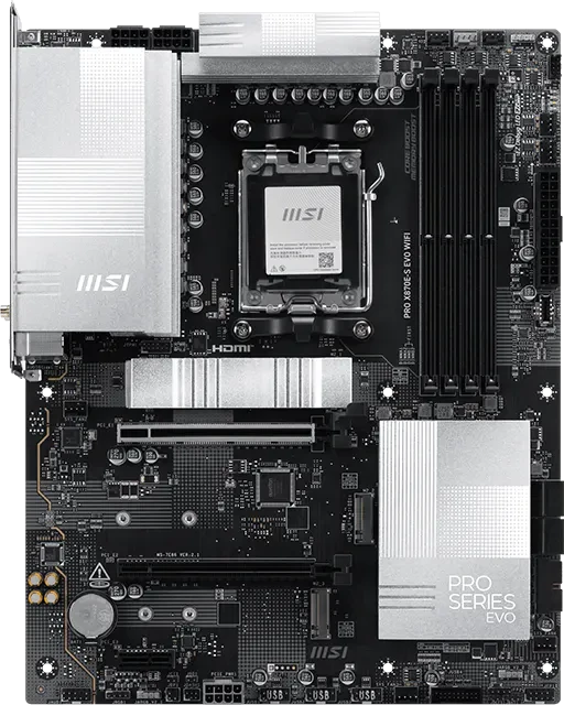 Доставка в 75000 населённых пунктов, ТК СДЭК, Яндекс и Почта РФ Все формы оплаты для физических и юридических лиц! Онлайн конфигураторы ПК и сервера, бесплатная сборка. Гарантия 2 года! Широкий ассортимент комплектующих. Более 30 лет на рынке! 25 630 ₽ ID товара: 775689 Материнская плата MSI PRO X870E-S EVO WIFI ОсновныеПроизводитель ........................................................................................................................................................................................................ Код производителя ........................................................................................................................................................................................................ PRO X870E-S EVO WIFI Сокет ........................................................................................................................................................................................................ Чипсет ........................................................................................................................................................................................................ ПамятьТип памяти ........................................................................................................................................................................................................ Количество слотов памяти ........................................................................................................................................................................................................ Максимальный объём поддерживаемой памяти ........................................................................................................................................................................................................ 256 Гб Поддержка ........................................................................................................................................................................................................ AMD EXPO Дисковые контроллерыКонтроллер SATA ........................................................................................................................................................................................................ 4 x SATA-III (6 Гб/с) Поддержка RAID ........................................................................................................................................................................................................ 0, 1, 5, 10 Слоты расширенияСлоты расширения ........................................................................................................................................................................................................ PCI-E 5.0 x16, PCI-E 4.0 x16, PCI-E x1, 3 x PCI-E M.2 Тип слотов M.2 ........................................................................................................................................................................................................ 2260/2280 (PCI-E 5.0 x4), 2260/2280 (PCI-E 4.0 x4), 2280/22110 (PCI-E 4.0 x4) Поддерживаемые режимы PCI-Express ........................................................................................................................................................................................................ x16/x4 Аудио/ВидеоИнтегрированное видео ........................................................................................................................................................................................................ Звук ........................................................................................................................................................................................................ Аудио-контроллер ........................................................................................................................................................................................................ СетьСетевой интерфейс ........................................................................................................................................................................................................ 5 Gigabit Ethernet (5 Гбит/с), Wi-Fi, Bluetooth Сетевой контроллер ........................................................................................................................................................................................................ Realtek RTL8126VB Слот M.2 (E Key) ........................................................................................................................................................................................................ да Версия Wi-Fi ........................................................................................................................................................................................................ 7, модуль Wi-Fi 7 поддерживается только в Microsoft Windows 11 версии 24H2 или более поздних Версия Bluetooth ........................................................................................................................................................................................................ 5.4, модуль Bluetooth 5.4 поддерживается то