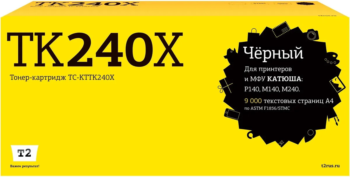 Доставка в 75000 населённых пунктов, ТК СДЭК, Яндекс и Почта РФ Все формы оплаты для физических и юридических лиц! Онлайн конфигураторы ПК и сервера, бесплатная сборка. Гарантия 2 года! Широкий ассортимент комплектующих. Более 30 лет на рынке! 2 350 ₽ ID товара: 777409 Картридж T2 TC-KTTK240X Black ОсновныеПроизводитель ........................................................................................................................................................................................................ Код производителя ........................................................................................................................................................................................................ TC-KTTK240X Тип ........................................................................................................................................................................................................ Тип печати ........................................................................................................................................................................................................ Тип совместимости ........................................................................................................................................................................................................ Совместимый производитель ........................................................................................................................................................................................................ Катюша Цвет ........................................................................................................................................................................................................ чёрный (black) Совместимость ........................................................................................................................................................................................................ Катюша M240, Катюша M240p, Катюша P140 ДополнительноРесурс ........................................................................................................................................................................................................ 9000 стр. Количество в упаковке ........................................................................................................................................................................................................ 1 шт. Сайт производителя ........................................................................................................................................................................................................ |