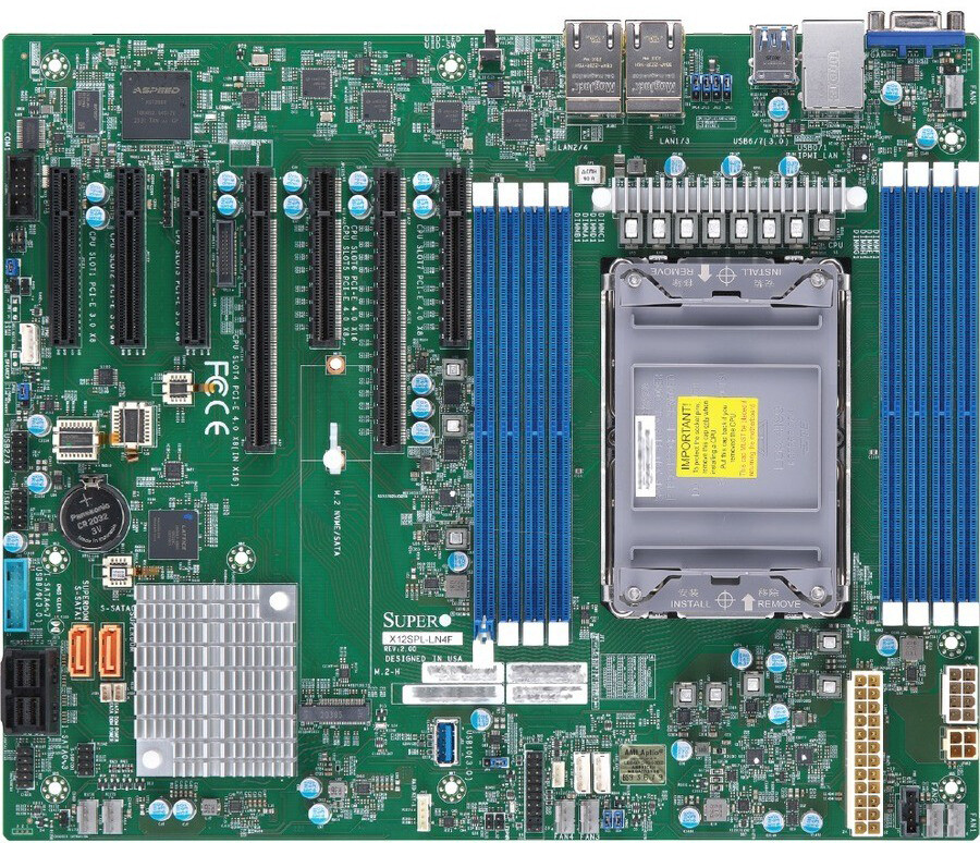Доставка в 75000 населённых пунктов, ТК СДЭК, Яндекс и Почта РФ Все формы оплаты для физических и юридических лиц! Онлайн конфигураторы ПК и сервера, бесплатная сборка. Гарантия 2 года! Широкий ассортимент комплектующих. Более 30 лет на рынке! 76 500 ₽ ID товара: 779356 Серверная материнская плата SuperMicro X12SPL-LN4F-B ОсновныеПроизводитель ........................................................................................................................................................................................................ Код производителя ........................................................................................................................................................................................................ MBD-X12SPL-LN4F-B Socket ........................................................................................................................................................................................................ Количество сокетов ........................................................................................................................................................................................................ Поддерживаемые процессоры ........................................................................................................................................................................................................ 3rd Gen Intel Xeon Scalable processors Максимальное количество ядер ........................................................................................................................................................................................................ 40 Максимальное тепловыделение ........................................................................................................................................................................................................ 270 Вт Чипсет ........................................................................................................................................................................................................ ПамятьСтандарт памяти ........................................................................................................................................................................................................ Тип поддерживаемой памяти ........................................................................................................................................................................................................ RDIMM, LRDIMM Количество слотов памяти ........................................................................................................................................................................................................ Поддержка частот ........................................................................................................................................................................................................ 2666 МГц, 2933 МГц, 3200 МГц Максимальный объём памяти ........................................................................................................................................................................................................ Дисковые контроллеры и слоты расширенияДисковые контроллеры ........................................................................................................................................................................................................ 2 x SATA-III (6 Гб/с), 2 x Mini-SAS HD Поддержка RAID ........................................................................................................................................................................................................ 0, 1, 5, 10 Слоты расширения ........................................................................................................................................................................................................ 2 x PCI-E 4.0 x16, 5 x PCI-E x8, M.2 Интерфейс M.2 ........................................................................................................................................................................................................ PCI-E, SATA Размер M.2 ........................................................................................................................................................................................................ 22110 Аудио/видеоВстроенный видеоадаптер ........................................................................................................................................................................................................ да, ASPEED AST2600 BMC СетьСетевой интерфейс ........................................................................................................................................................................................................ 4 x Gigabit Ethernet (1 Гбит/с) ПодключениеРазъёмы на задней панели ........................................................................................................................................................................................................ 2 x USB 2.0, 2 x USB 3.2 Gen 1, VGA, 5 x