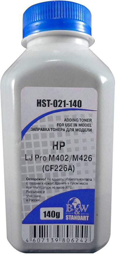 Доставка в 75000 населённых пунктов, ТК СДЭК, Яндекс и Почта РФ Все формы оплаты для физических и юридических лиц! Онлайн конфигураторы ПК и сервера, бесплатная сборка. Гарантия 2 года! Широкий ассортимент комплектующих. Более 30 лет на рынке! 300 ₽ ID товара: 779667 Тонер Black&White HST-021-140 Black ОсновныеПроизводитель ........................................................................................................................................................................................................ Код производителя ........................................................................................................................................................................................................ HST-021-140 Тип ........................................................................................................................................................................................................ Тип печати ........................................................................................................................................................................................................ Тип совместимости ........................................................................................................................................................................................................ Совместимый производитель ........................................................................................................................................................................................................ HP Цвет ........................................................................................................................................................................................................ чёрный (black) Совместимость ........................................................................................................................................................................................................ HP LaserJet Pro M402d (C5F92A), HP LaserJet Pro M402dn (C5F94A), HP LaserJet Pro M402dne (C5J91A), HP LaserJet Pro M402dw (C5F95A), HP LaserJet Pro M402m (C5F96A), HP LaserJet Pro M402n (C5F93A), HP LaserJet Pro M426dw (F6W16A), HP LaserJet Pro M426fdn (F6W17A), HP LaserJet Pro M426fdw (F6W15A), HP LaserJet Pro M426m (1GP80A) ДополнительноВес ........................................................................................................................................................................................................ 140 г Количество в упаковке ........................................................................................................................................................................................................ 1 шт. Дополнительная информация ........................................................................................................................................................................................................ подходит для картриджей CF226A/CF226X |