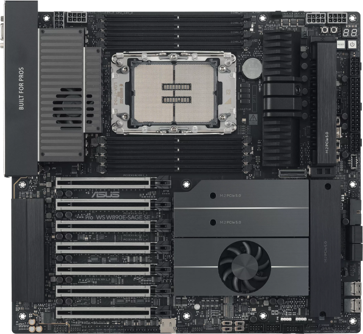 Доставка в 75000 населённых пунктов, ТК СДЭК, Яндекс и Почта РФ Все формы оплаты для физических и юридических лиц! Онлайн конфигураторы ПК и сервера, бесплатная сборка. Гарантия 2 года! Широкий ассортимент комплектующих. Более 30 лет на рынке! ID товара: 782653 Серверная материнская плата ASUS PRO WS W890E-SAGE SE ОсновныеПроизводитель ........................................................................................................................................................................................................ Код производителя ........................................................................................................................................................................................................ PRO WS W890E-SAGE SE Socket ........................................................................................................................................................................................................ Количество сокетов ........................................................................................................................................................................................................ Поддерживаемые процессоры ........................................................................................................................................................................................................ Xeon 600 Processors Чипсет ........................................................................................................................................................................................................ Формат крепления охлаждения ........................................................................................................................................................................................................ Narrow ILM ПамятьСтандарт памяти ........................................................................................................................................................................................................ Тип поддерживаемой памяти ........................................................................................................................................................................................................ RDIMM Количество слотов памяти ........................................................................................................................................................................................................ Поддержка частот ........................................................................................................................................................................................................ 7200 МГц, 7600 МГц, 8000 МГц, 8800 МГц Дисковые контроллеры и слоты расширенияДисковые контроллеры ........................................................................................................................................................................................................ 4 x SATA-III (6 Гб/с), 2 x SlimSAS, MCIO Поддержка RAID ........................................................................................................................................................................................................ 0, 1, 5, 10 Слоты расширения ........................................................................................................................................................................................................ 7 x PCI-E 5.0 x16, 4 x M.2 Интерфейс M.2 ........................................................................................................................................................................................................ PCI-E Размер M.2 ........................................................................................................................................................................................................ 2 x 22110, 2 x 2280 Аудио/видеоЗвук ........................................................................................................................................................................................................ да Встроенный видеоадаптер ........................................................................................................................................................................................................ да СетьСетевой интерфейс ........................................................................................................................................................................................................ Gigabit Ethernet (1 Гбит/с), 10 Gigabit Ethernet (10 Гбит/с) ПодключениеРазъёмы на задней панели ........................................................................................................................................................................................................ 6 x USB 3.2 Gen 2, 2 x USB 4 Type-C, VGA, 2 x Mini DisplayPort, 3 x RJ-45 Основной разъём питания ........................................................................................................................................................................................................ 24-pin Разъём 