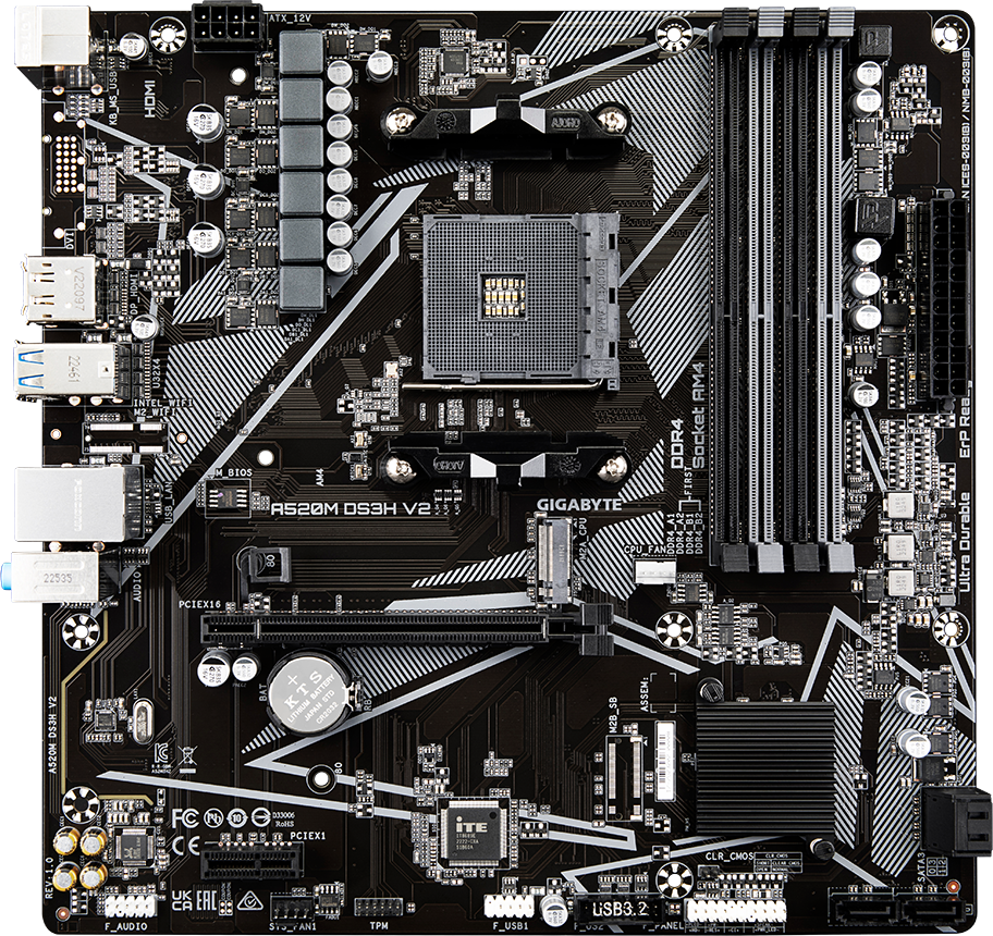 Доставка в 75000 населённых пунктов, ТК СДЭК, Яндекс и Почта РФ Все формы оплаты для физических и юридических лиц! Онлайн конфигураторы ПК и сервера, бесплатная сборка. Гарантия 2 года! Широкий ассортимент комплектующих. Более 30 лет на рынке! 6 690 ₽ ID товара: 78352 Материнская плата Gigabyte A520M DS3H V2 ОсновныеПроизводитель ........................................................................................................................................................................................................ Код производителя ........................................................................................................................................................................................................ A520M DS3H V2 Сокет ........................................................................................................................................................................................................ Чипсет ........................................................................................................................................................................................................ ПамятьТип памяти ........................................................................................................................................................................................................ Количество слотов памяти ........................................................................................................................................................................................................ Дисковые контроллерыКонтроллер SATA ........................................................................................................................................................................................................ 4 x SATA-III (6 Гб/с) Поддержка RAID ........................................................................................................................................................................................................ 0, 1, 10 Слоты расширенияСлоты расширения ........................................................................................................................................................................................................ PCI-E 3.0 x16, PCI-E x1, PCI-E M.2 Тип слотов M.2 ........................................................................................................................................................................................................ Socket 3, M key, 2280 (SATA & PCIe 3.0 x2/x4) Аудио/ВидеоИнтегрированное видео ........................................................................................................................................................................................................ Звук ........................................................................................................................................................................................................ Аудио-контроллер ........................................................................................................................................................................................................ СетьСетевой интерфейс ........................................................................................................................................................................................................ Gigabit Ethernet (1 Гбит/с) Сетевой контроллер ........................................................................................................................................................................................................ Realtek ИнтерфейсыРазъёмы на задней панели ........................................................................................................................................................................................................ PS/2, 4 x USB 2.0, 4 x USB 3.2 Gen1, HDMI, DisplayPort, RJ-45 ДополнительноРазъёмы для подключения вентиляторов корпуса ........................................................................................................................................................................................................ 4-pin Разъём питания ATX 12 В ........................................................................................................................................................................................................ 8-pin Внутренние разъёмы USB на плате ........................................................................................................................................................................................................ USB 2.0, USB 3.2 Gen1 Форм-фактор ........................................................................................................................................................................................................ Тип поставки ........................................................................................................................................................................................................ Цвета, использованные в оформлении ....................................................................