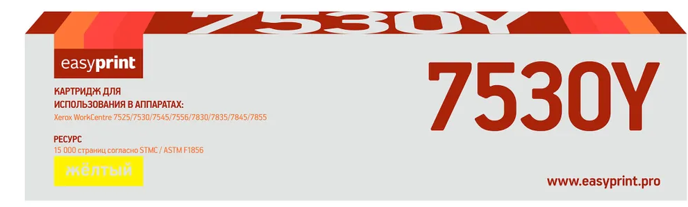 Доставка в 75000 населённых пунктов, ТК СДЭК, Яндекс и Почта РФ Все формы оплаты для физических и юридических лиц! Онлайн конфигуратор ПК, бесплатная сборка. Гарантия 2 года! Широкий ассортимент комплектующих. Более 30 лет на рынке! 1 390 ₽ ID товара: 85486 Картридж EasyPrint LX-7530Y Yellow ОсновныеПроизводитель ........................................................................................................................................................................................................ Код производителя ........................................................................................................................................................................................................ LX-7530Y Тип ........................................................................................................................................................................................................ Тип печати ........................................................................................................................................................................................................ Тип совместимости ........................................................................................................................................................................................................ Совместимый производитель ........................................................................................................................................................................................................ Xerox Цвет ........................................................................................................................................................................................................ жёлтый (yellow) Совместимость ........................................................................................................................................................................................................ Xerox WorkCentre 7525, Xerox WorkCentre 7530, Xerox WorkCentre 7535, Xerox WorkCentre 7545, Xerox WorkCentre 7556, Xerox WorkCentre 7830, Xerox WorkCentre 7835, Xerox WorkCentre 7845, Xerox WorkCentre 7855, Xerox WorkCentre 7970 ДополнительноРесурс ........................................................................................................................................................................................................ 15000 стр. Количество в упаковке ........................................................................................................................................................................................................ 1 шт. Сайт производителя ........................................................................................................................................................................................................ |