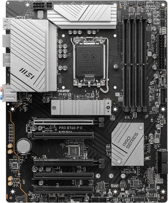 Доставка в 75000 населённых пунктов, ТК СДЭК, Яндекс и Почта РФ Все формы оплаты для физических и юридических лиц! Онлайн конфигуратор ПК, бесплатная сборка. Гарантия 2 года! Широкий ассортимент комплектующих. Более 30 лет на рынке! 9 680 ₽ ID товара: 941211 ..... Материнская плата MSI PRO B760-P II (2411) из ремонта ОсновныеПроизводитель ........................................................................................................................................................................................................ Код производителя ........................................................................................................................................................................................................ PRO B760-P II Сайт производителя ........................................................................................................................................................................................................ |