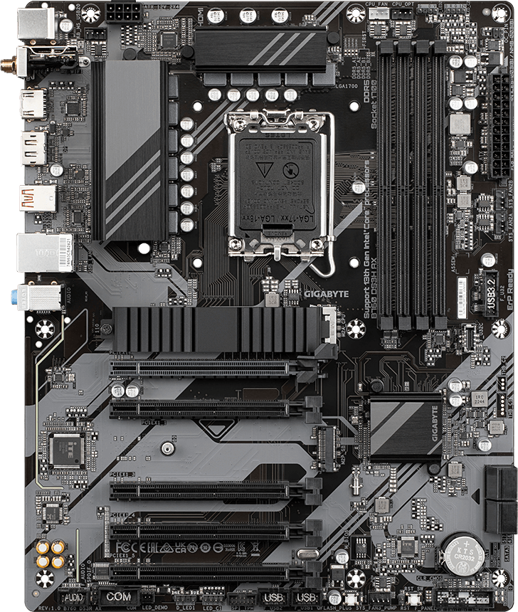 Доставка в 75000 населённых пунктов, ТК СДЭК, Яндекс и Почта РФ Все формы оплаты для физических и юридических лиц! Онлайн конфигураторы ПК и сервера, бесплатная сборка. Гарантия 2 года! Широкий ассортимент комплектующих. Более 30 лет на рынке! ID товара: 9824 Материнская плата Gigabyte B760 DS3H AX ОсновныеПроизводитель ........................................................................................................................................................................................................ Код производителя ........................................................................................................................................................................................................ B760 DS3H AX Сокет ........................................................................................................................................................................................................ Чипсет ........................................................................................................................................................................................................ ПамятьТип памяти ........................................................................................................................................................................................................ Количество слотов памяти ........................................................................................................................................................................................................ Дисковые контроллерыКонтроллер SATA ........................................................................................................................................................................................................ 4 x SATA-III (6 Гб/с) Поддержка RAID ........................................................................................................................................................................................................ 0, 1, 5, 10 Слоты расширенияСлоты расширения ........................................................................................................................................................................................................ PCI-E 4.0 x16, 4 x PCI-E 3.0 x16, 2 x PCI-E M.2 Тип слотов M.2 ........................................................................................................................................................................................................ - Socket 3, M key, 22110/2280 (PCIe 4.0 x4/x2); - Socket 3, M key, 2280 (PCIe 4.0 x4/x2). Поддерживаемые режимы PCI-Express ........................................................................................................................................................................................................ x16/x1/x1/x1/x1 Аудио/ВидеоИнтегрированное видео ........................................................................................................................................................................................................ Звук ........................................................................................................................................................................................................ Аудио-контроллер ........................................................................................................................................................................................................ СетьСетевой интерфейс ........................................................................................................................................................................................................ Gigabit Ethernet (1 Гбит/с), Wi-Fi, Bluetooth Сетевой контроллер ........................................................................................................................................................................................................ Realtek ИнтерфейсыРазъёмы на задней панели ........................................................................................................................................................................................................ PS/2, 4 x USB 2.0, USB 3.2 Gen2, USB 3.2 Gen2x2 Type-C, HDMI, DisplayPort, RJ-45 ДополнительноРадиатор на подсистеме питания (мосфетах) ........................................................................................................................................................................................................ да Разъёмы для подключения вентиляторов корпуса ........................................................................................................................................................................................................ 4 x 4-pin Разъём питания ATX 12 В ........................................................................................................................................................................................................ 8-pin Внутренние разъёмы USB на плате ..................................................................................................................................................................