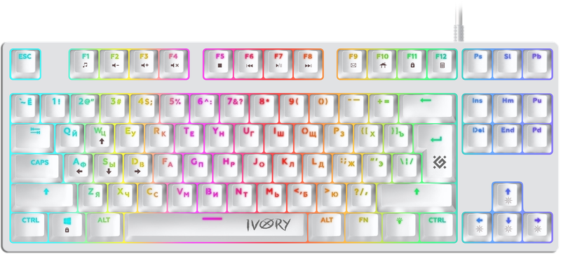Доставка в 75000 населённых пунктов, ТК СДЭК, Яндекс и Почта РФ Все формы оплаты для физических и юридических лиц! Онлайн конфигуратор ПК, бесплатная сборка. Гарантия 2 года! Широкий ассортимент комплектующих. Более 30 лет на рынке! 2 080 ₽ ID товара: 9840 Клавиатура Defender Ivory GK-579 (45579) ОсновныеПроизводитель ........................................................................................................................................................................................................ Код производителя ........................................................................................................................................................................................................ 45579 Тип устройства ........................................................................................................................................................................................................ клавиатура Тип соединения ........................................................................................................................................................................................................ Интерфейс подключения ........................................................................................................................................................................................................ USB Размер клавиатуры ........................................................................................................................................................................................................ Тип клавиатуры ........................................................................................................................................................................................................ Конструкция ........................................................................................................................................................................................................ игровая Тип переключателей ........................................................................................................................................................................................................ Outemu Red Формат клавиатуры ........................................................................................................................................................................................................ ISO Количество клавиш ........................................................................................................................................................................................................ 87 Подсветка клавиш клавиатуры ........................................................................................................................................................................................................ да Цвет подсветки ........................................................................................................................................................................................................ RGB ДополнительноЦвет ........................................................................................................................................................................................................ белый Размеры (ШхВхГ) ........................................................................................................................................................................................................ 358 x 30 x 135 мм Гарантия ........................................................................................................................................................................................................ 12 мес. Сайт производителя ........................................................................................................................................................................................................ |