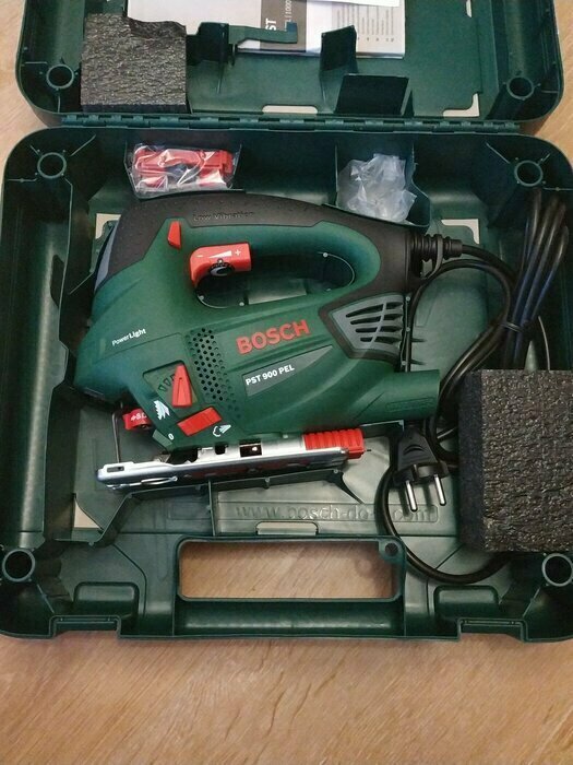 Подсветка, сдув. Удобный пенал для двух полотен. Крепление пилок. Мощность. Пластиковая коробка для хранения.