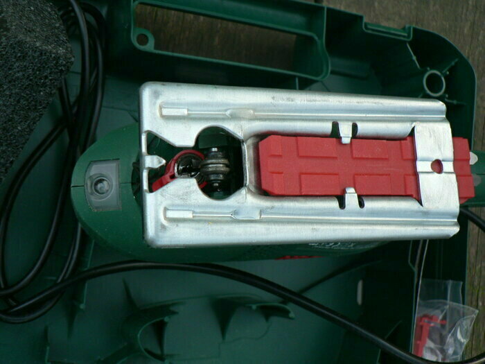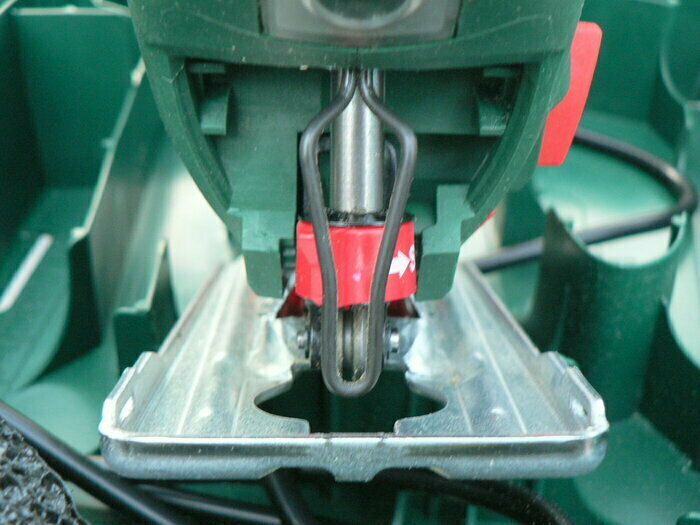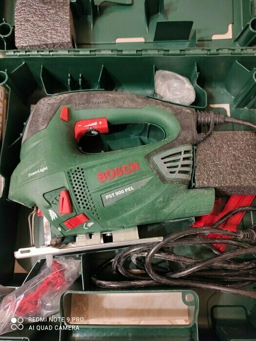 1.Ненужные приблуды обвеса. 2.Не очень хорошо, фиксируется подошва. 3.КРИВО пилит! Это реально проблема! Пытался тут, сделать кривой пропил, на довольно сырой доске 50мм, так местами рез получился почти под 45 градусов! На более тонких, досках или фанере не так заметно. Причина проста, патрон с цангой под пилку, болтается в своих направляющих! Пилить на маятнике, практически нереально, уводит даже пилка слетает с ролика! На старом Боше 99 года выпуска, направляющая люфтит на порядок меньше....