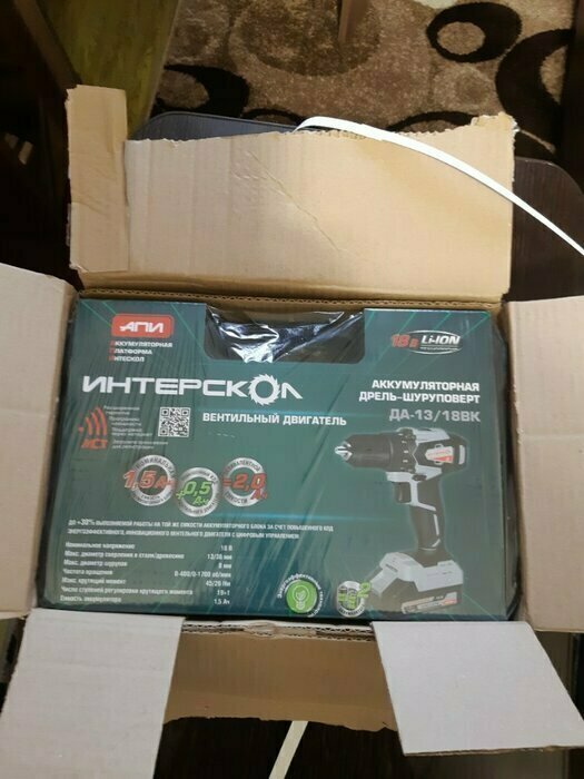 Курьер принес прямо домой! Дрель новая, красивая в чемодане, полный комплект. Подарила мужу, счастлив! Позже напишу, как покажет себя в работе!