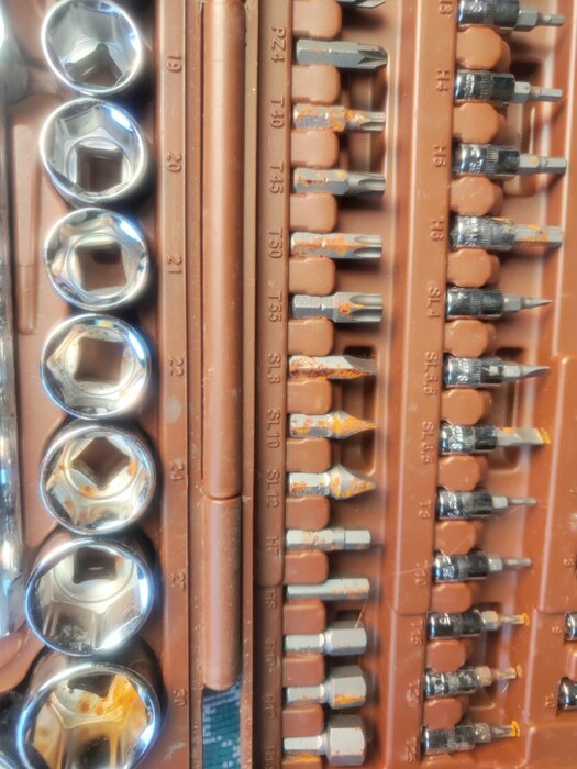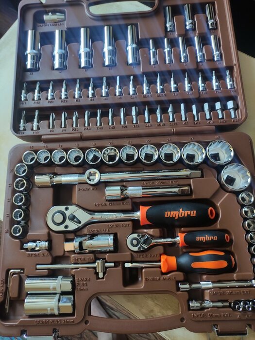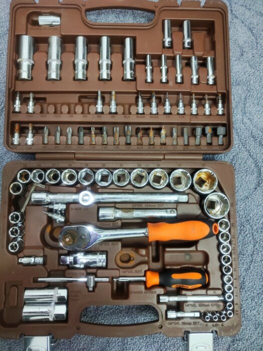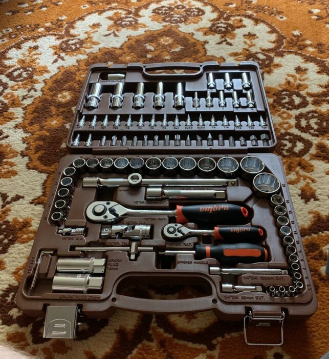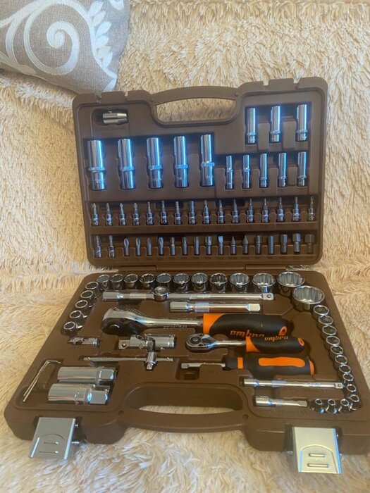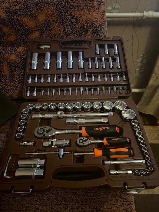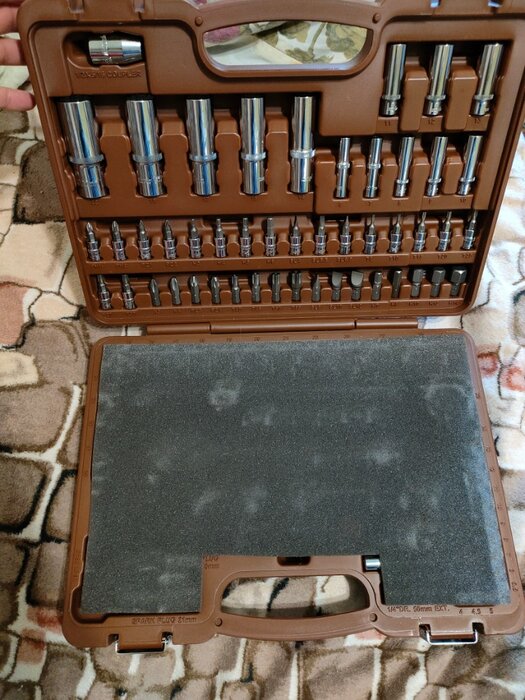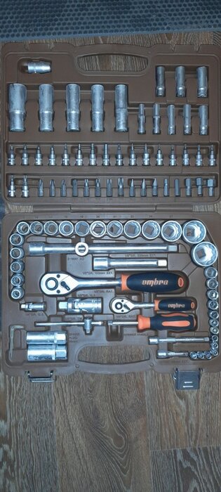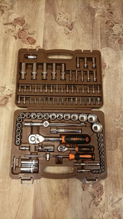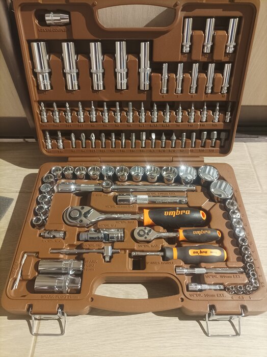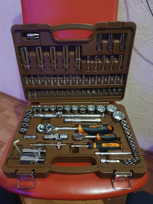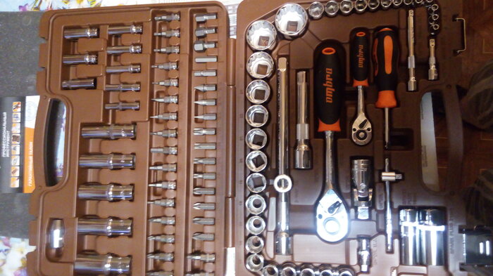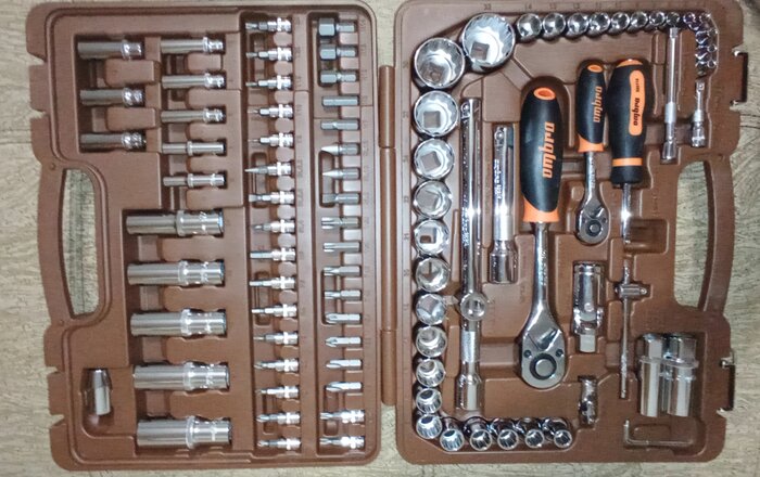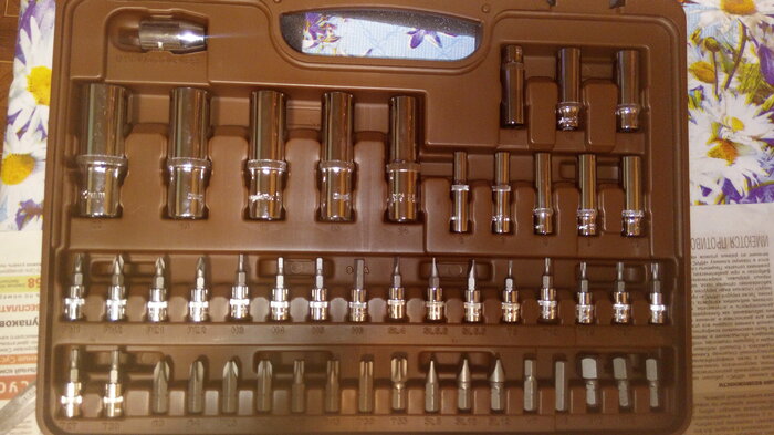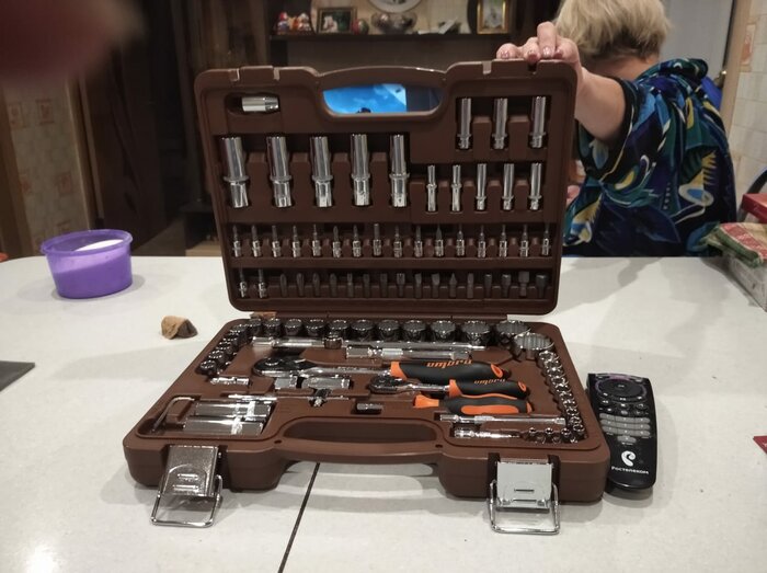 Количество предметов; инструмент не ржавеет; качественный кейс, из которого все не высыпается при открытии; надёжная трещетка