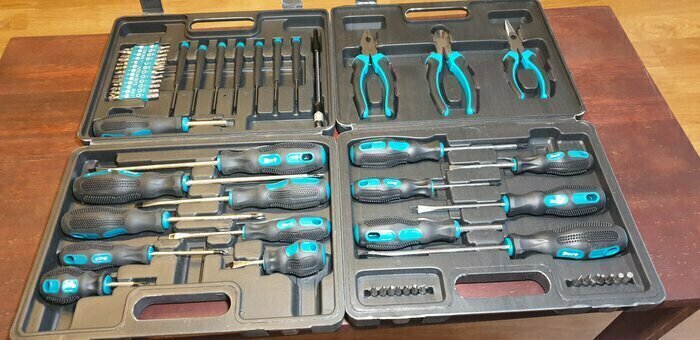 Плоскогубцы сработаны оказались не очень, туговато работают, и чемоданчик имеет не самую удобную защелку. В остальном отличный набор без лишних +100500 ненужных предметов.