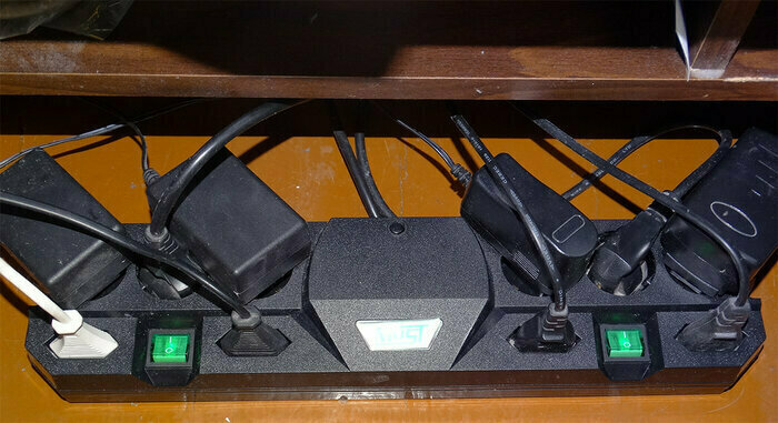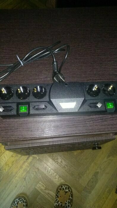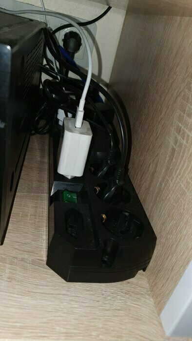 Очень хороший сетевой фильтр. Давно хотел такой, чтобы организовать все провода и вилки не телепались. Очень жаль, что нет USB разъёмов. На столе куча техники, работающей от USB (два вентилятора, подсветка коврика, зарядка для док-станции, лампа для монитора и т.д.)